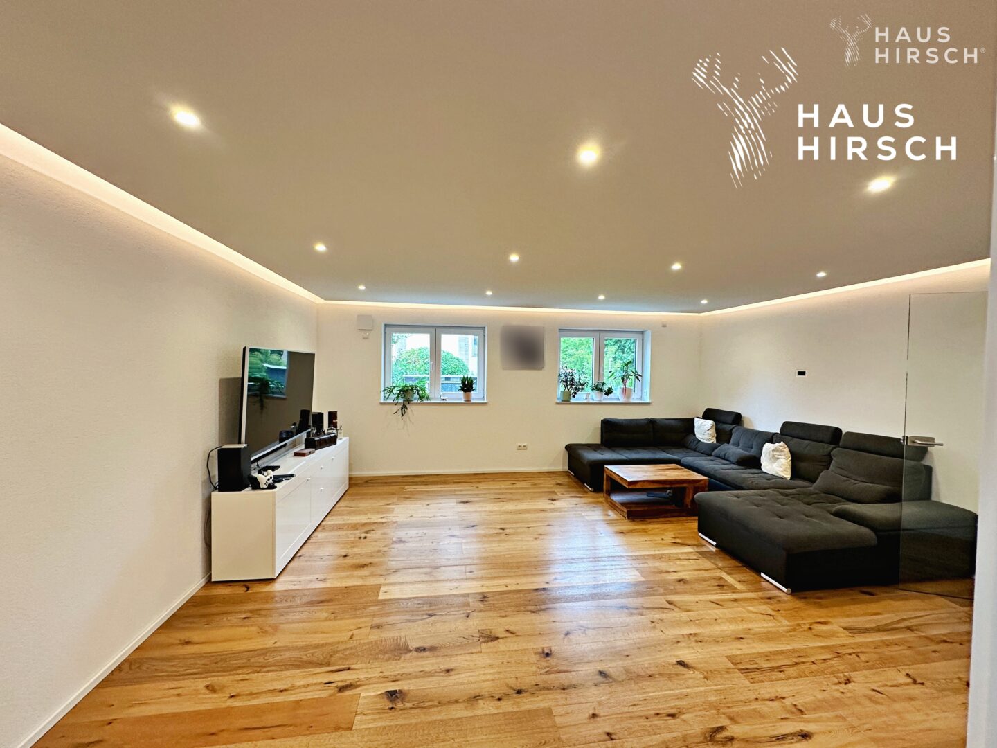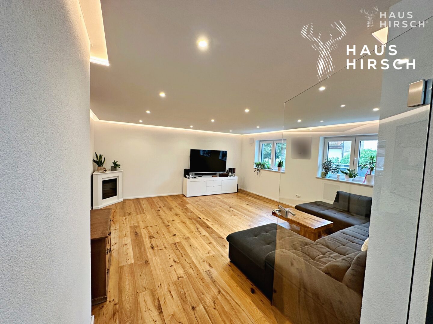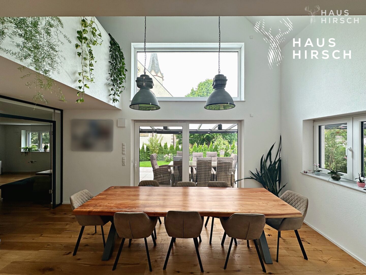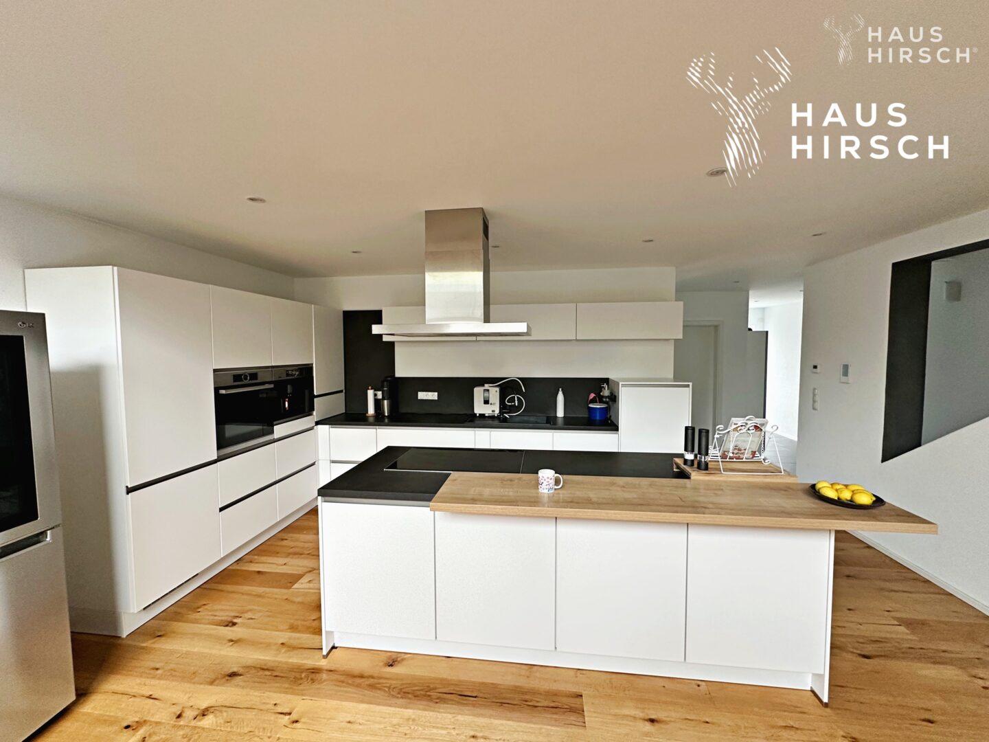 Im Erdgeschoss erwartet Sie ein offener Wohn- und Essbereich (ca. 40 m²) mit angrenzender Küche in L-Form samt Kochinsel und hochwertigen Bosch-Einbaugeräten auf Standhöhe (inkl. Kaffeevollautomat). Eine separate Speisekammer sowie ein angrenzender Wohnbereich (knapp 30 m²) und ein Arbeitszimmer (16 m²) runden das Raumangebot ab.