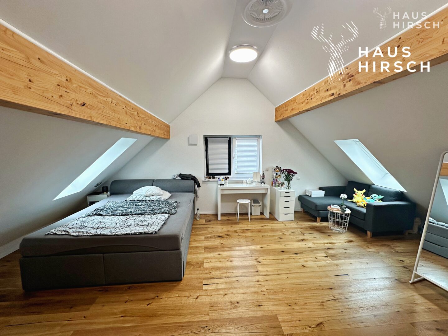 Im Dachgeschoss befindet sich ein weiterer großzügiger Raum (ca. 38 m²) mit zwei separaten Abstellräumen.