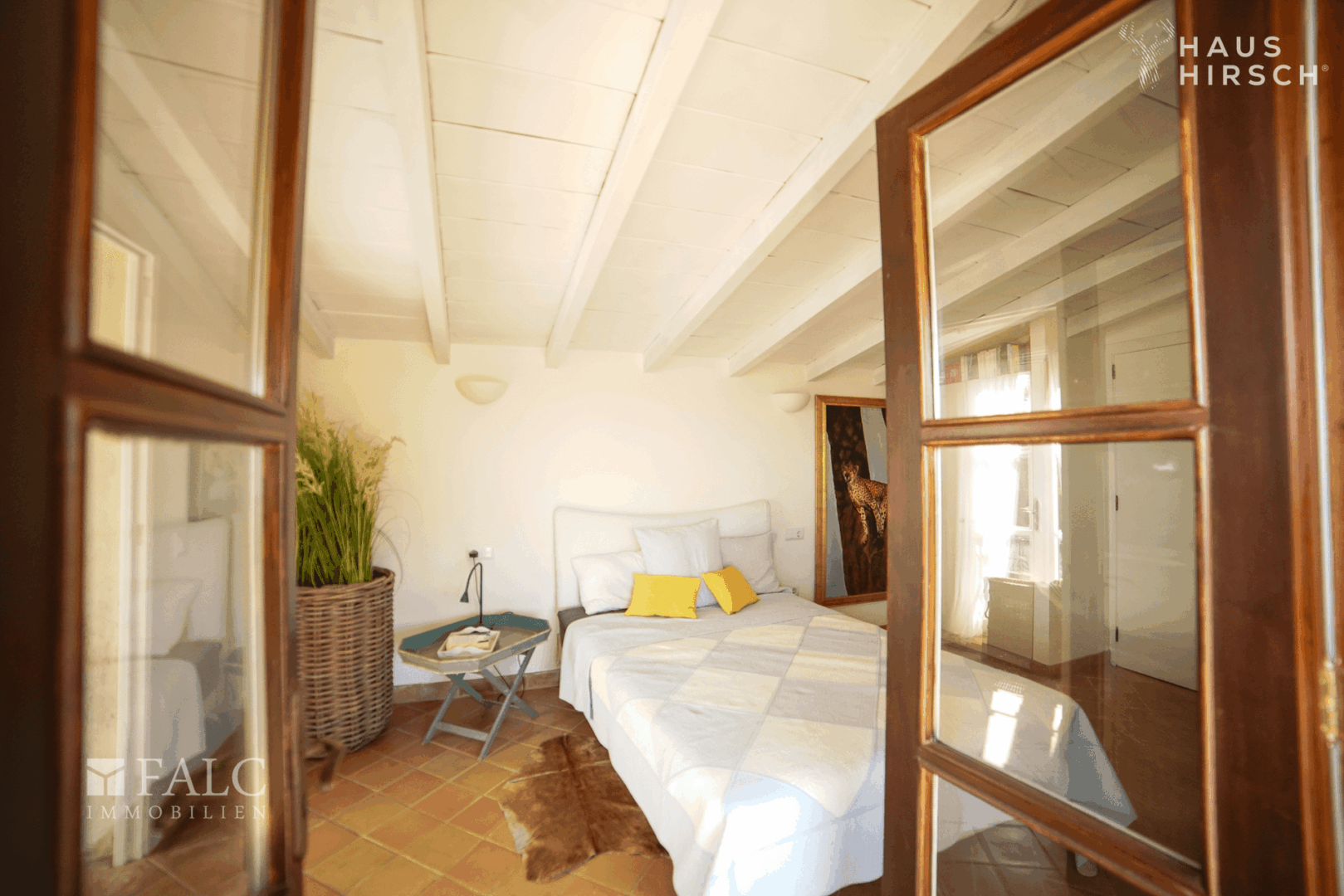 Die Finca verfügt über drei Schlafzimmer mit jeweils eigenen Bädern, die Rückzug und Privatsphäre auf höchstem Niveau garantieren. Für Gäste steht ein separater Bereich zur Verfügung – ein diskreter und zugleich komfortabler Ort, der das Anwesen noch attraktiver macht.