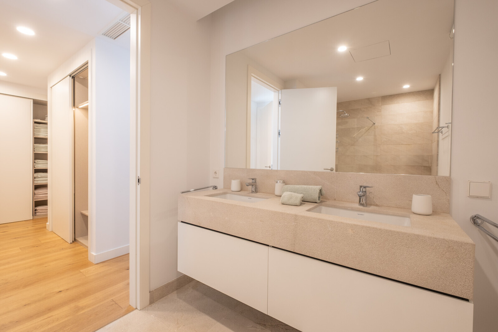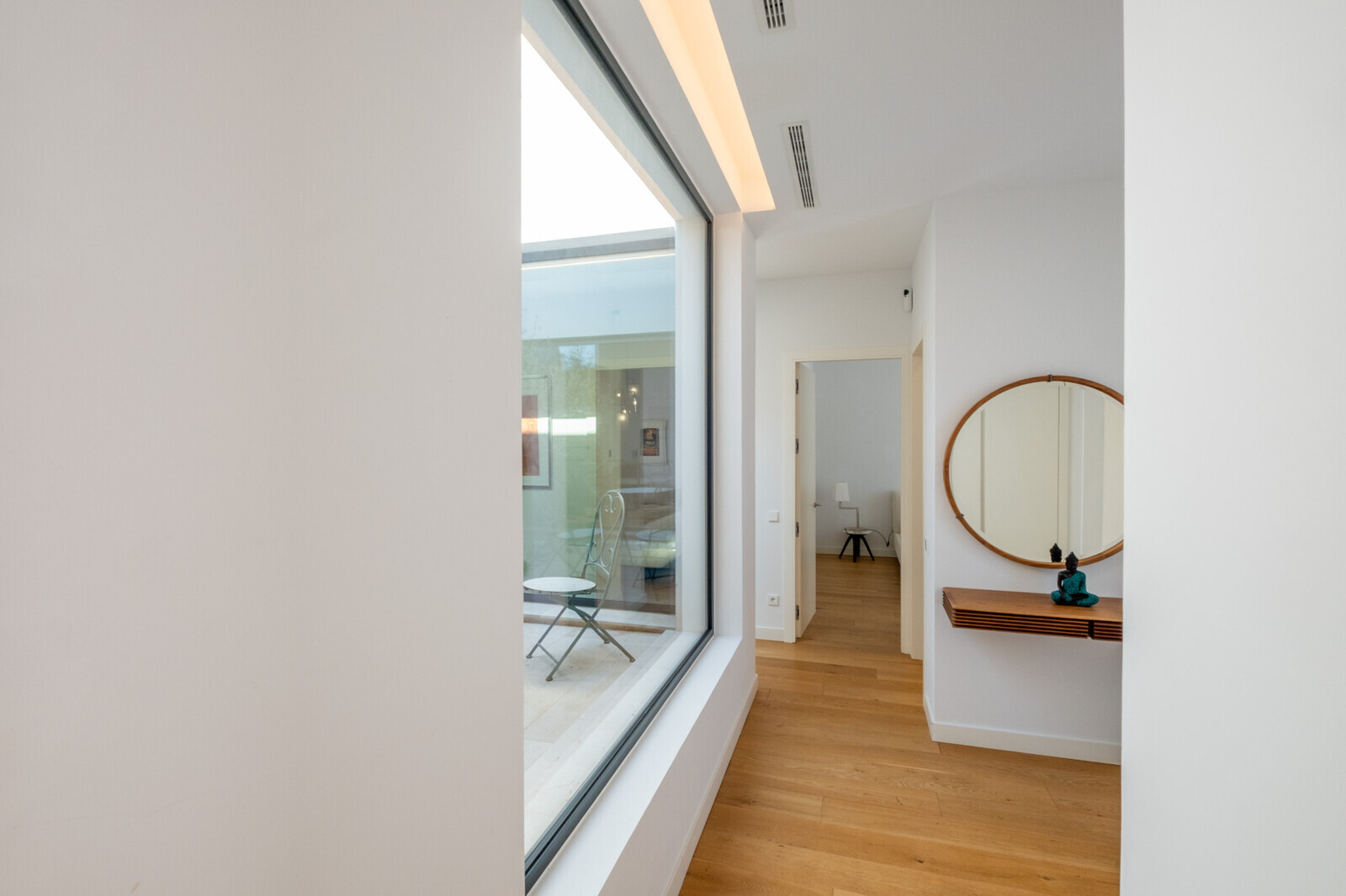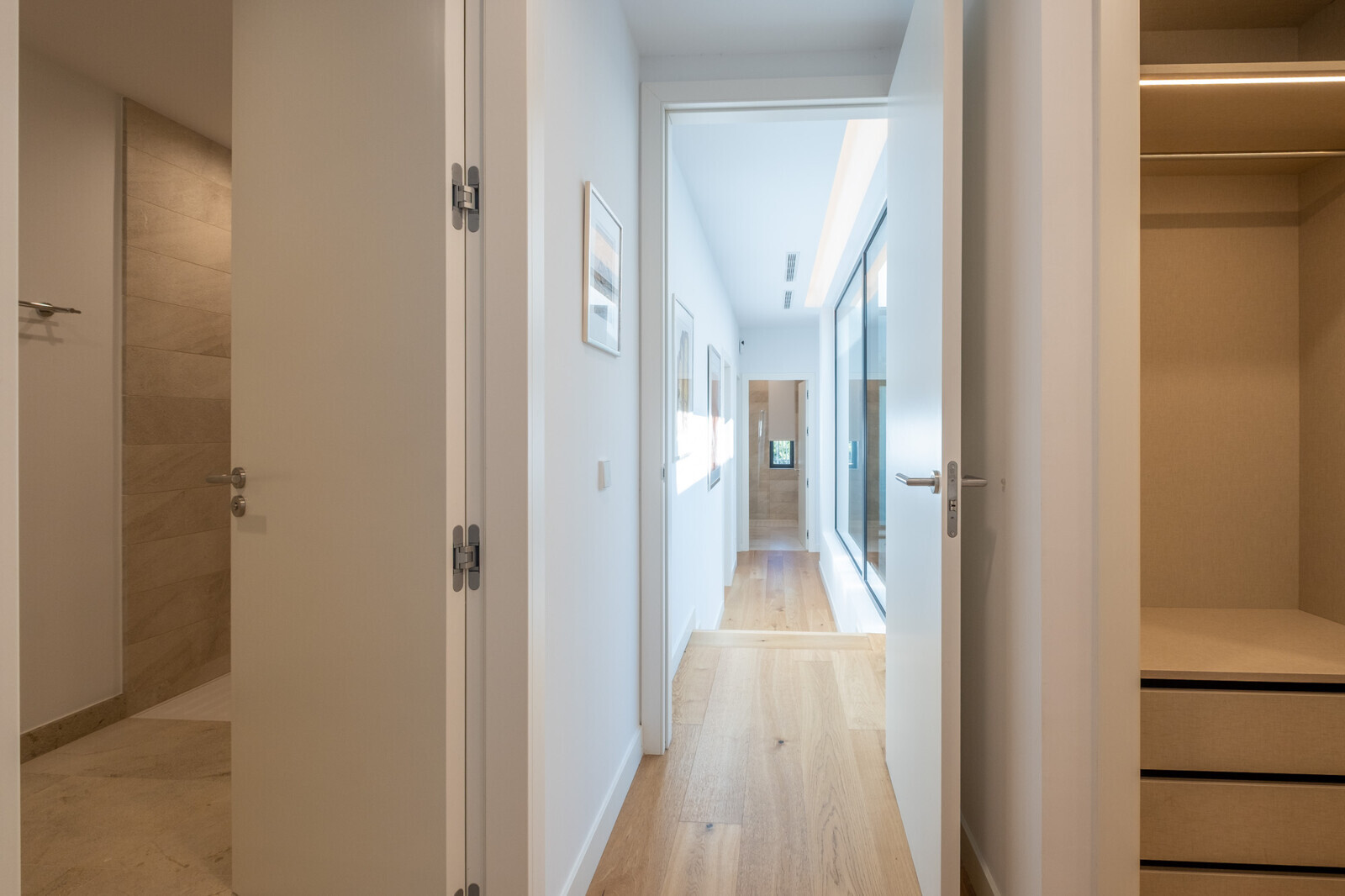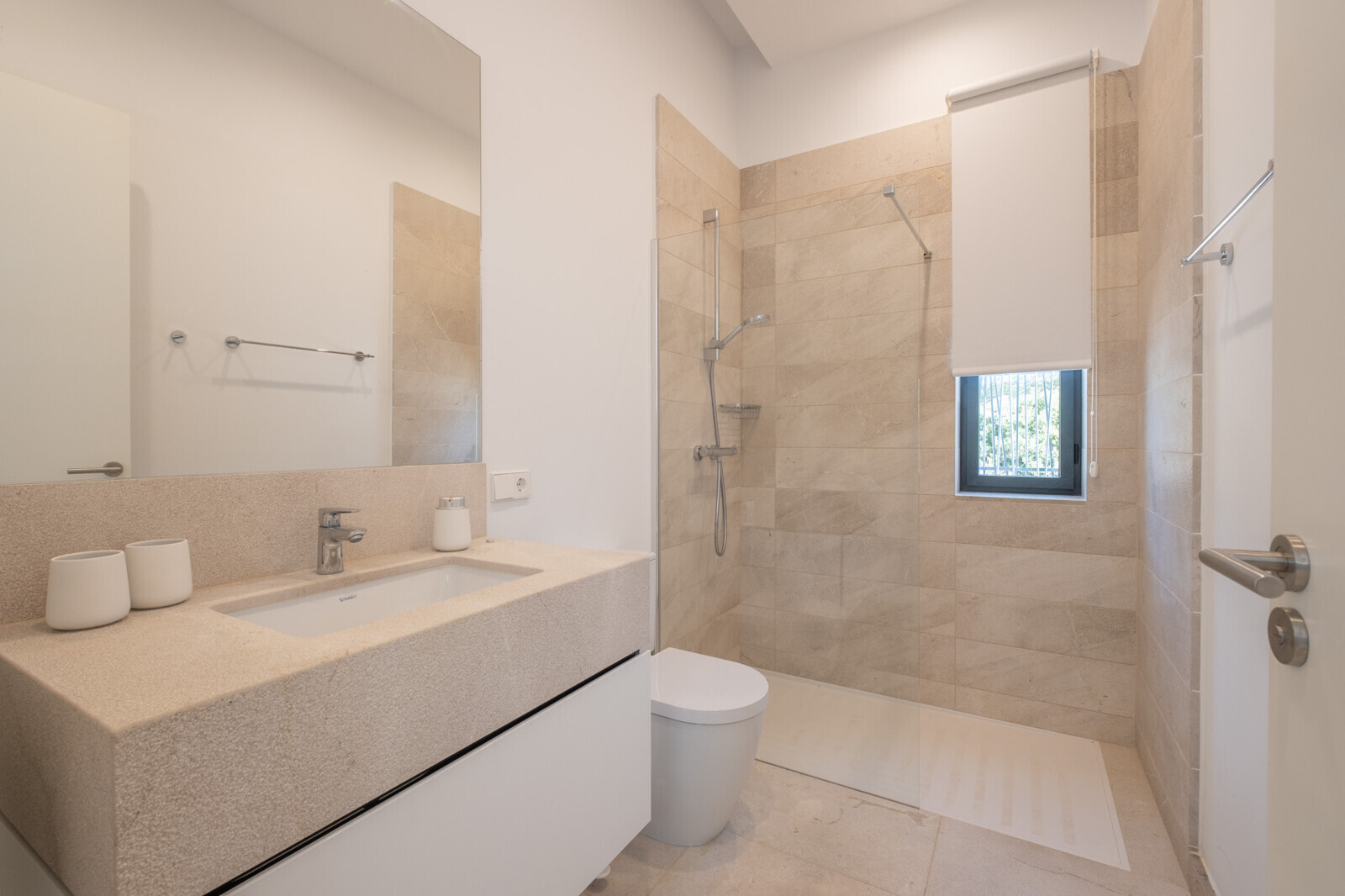 Insgesamt stehen Ihnen drei Schlafzimmer zur Verfügung, sowie ein Ankleidezimmer, in dem Sie Ihre Garderobe stilvoll unterbringen können. Zwei Bäder mit Kalksteinböden bieten Komfort und Luxus, während die Luft-Wärmepumpe und die Klimaanlage für angenehme Temperaturen das ganze Jahr über sorgen.