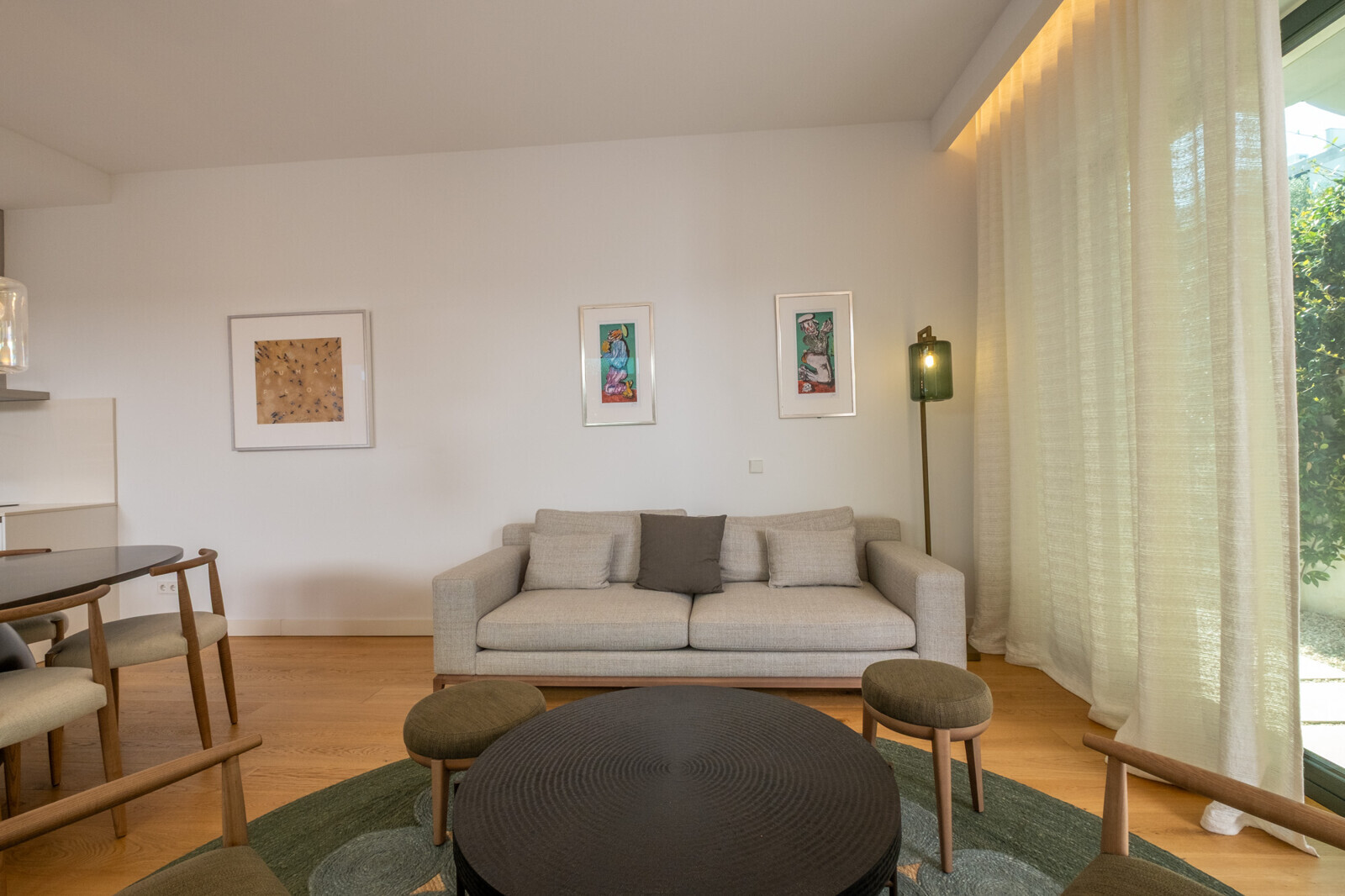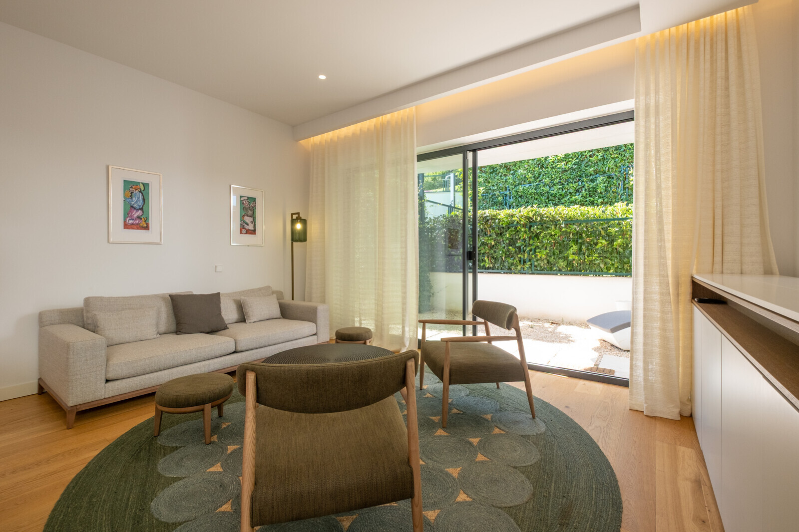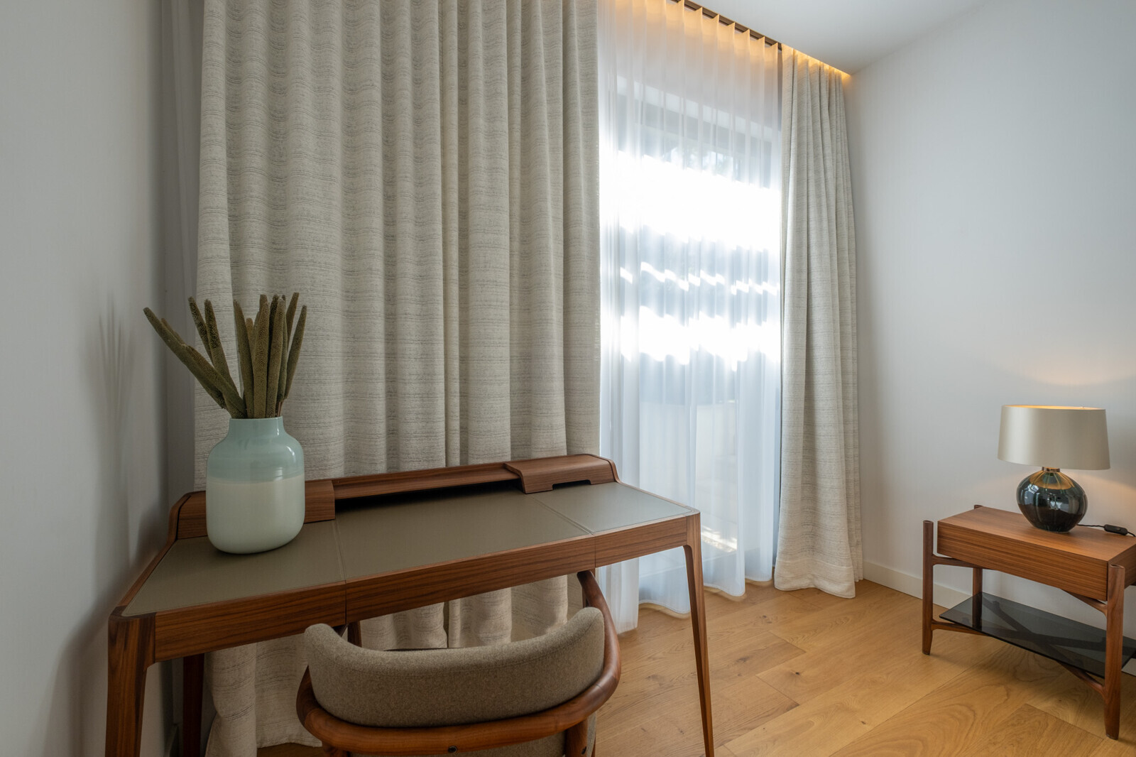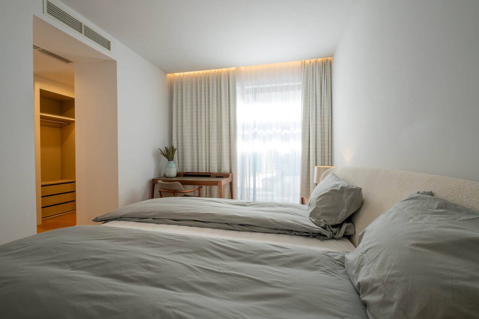 Insgesamt stehen Ihnen drei Schlafzimmer zur Verfügung, sowie ein Ankleidezimmer, in dem Sie Ihre Garderobe stilvoll unterbringen können. Zwei Bäder mit Kalksteinböden bieten Komfort und Luxus, während die Luft-Wärmepumpe und die Klimaanlage für angenehme Temperaturen das ganze Jahr über sorgen.