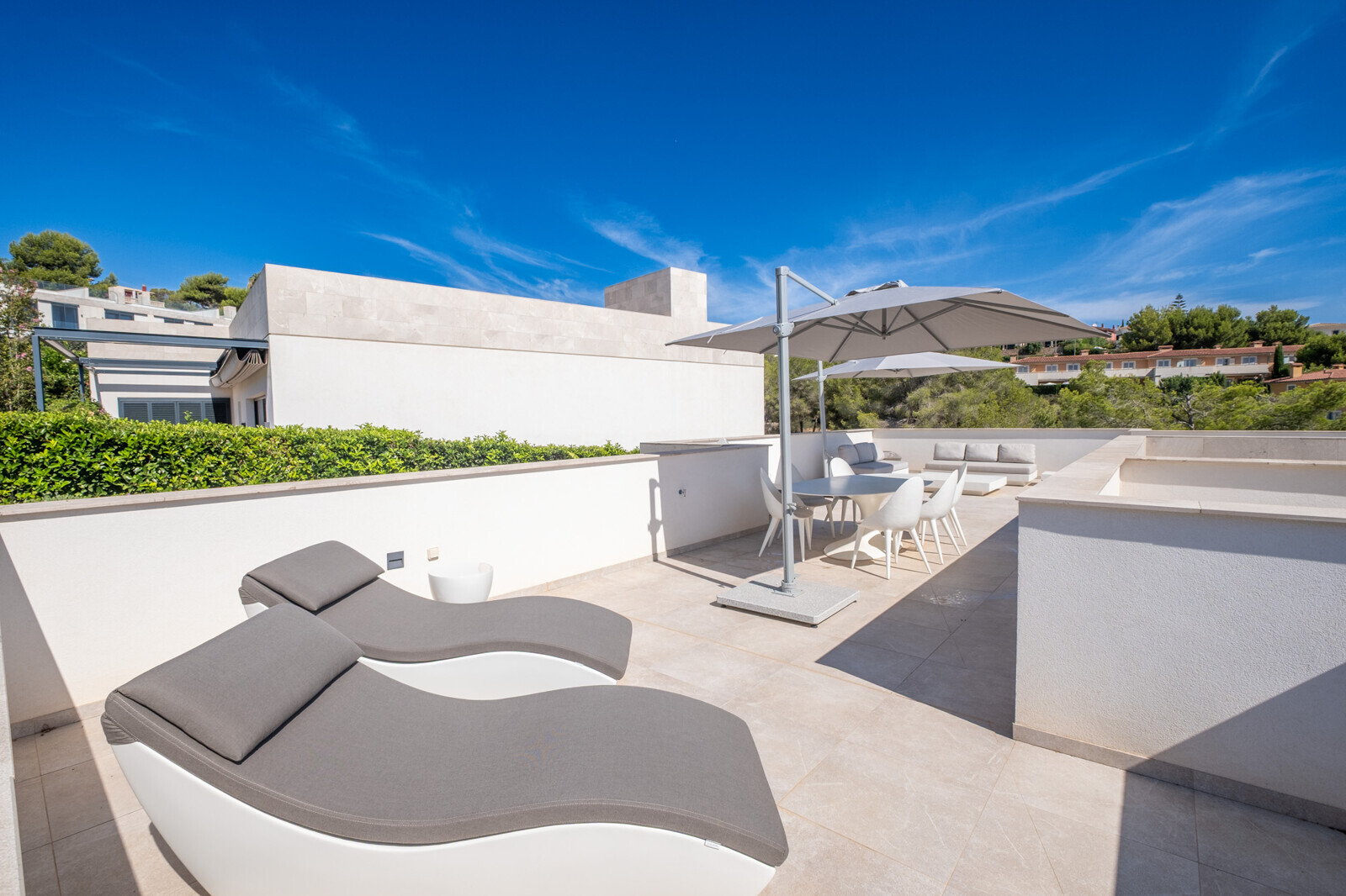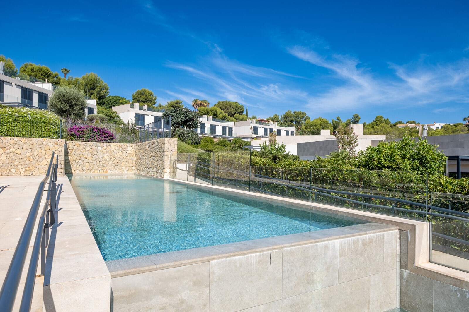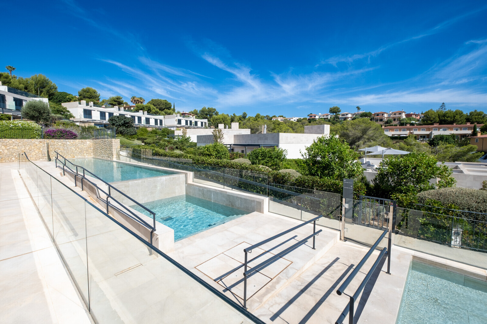 Willkommen in Ihrem zukünftigen Zuhause! Diese einzigartige Immobilie bietet alles, was Familien und Paare sich wünschen. Zum Verkauf steht ein modernes Einfamilienhaus in der ruhigen Wohngegend Cala Vinyes. Eingebunden in eine geschützte Gemeinschaftswohnanlage bietet dieses freistehende Haus dennoch absolute Privatsphäre.