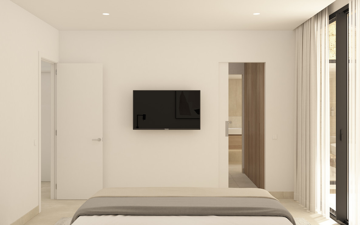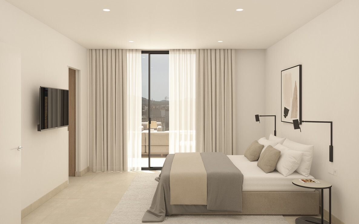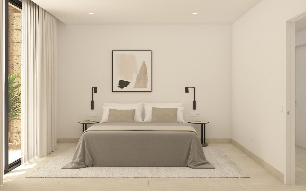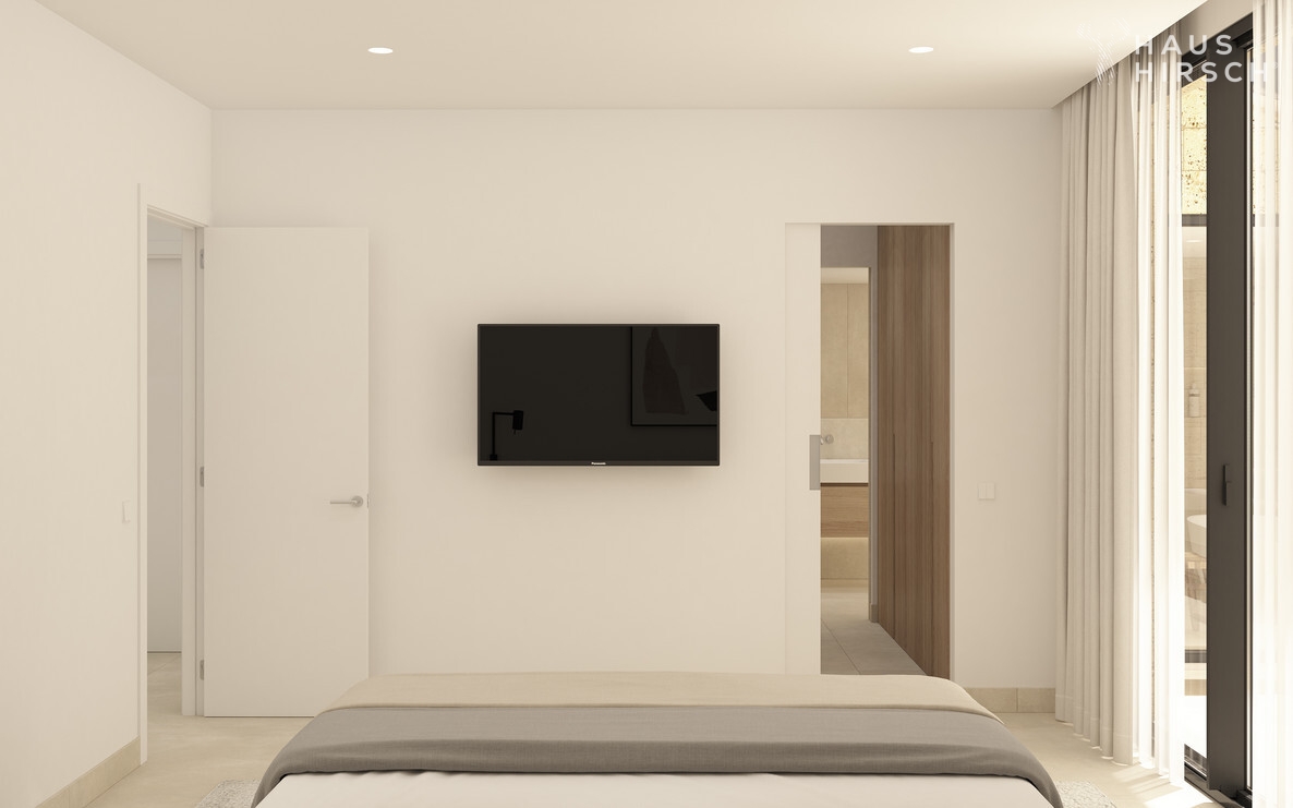 Die modern geschnittene Wohnung verfügt über insgesamt 4 Zimmer, davon 3 Schlafzimmer und 3 Badezimmer, alle en suite und einem separatem Gäste - WC. Das Hauptschlafzimmer hat einen direkten Terrassenzugang mit einem schönen Weitblick. Des weiteren wird die Wohnfläche durch einen zusätzlichen Hauswirtschaftsraum vervollständigt.