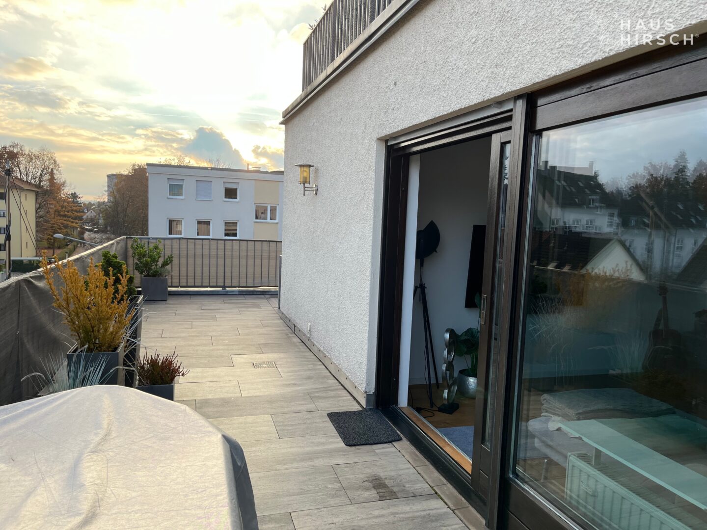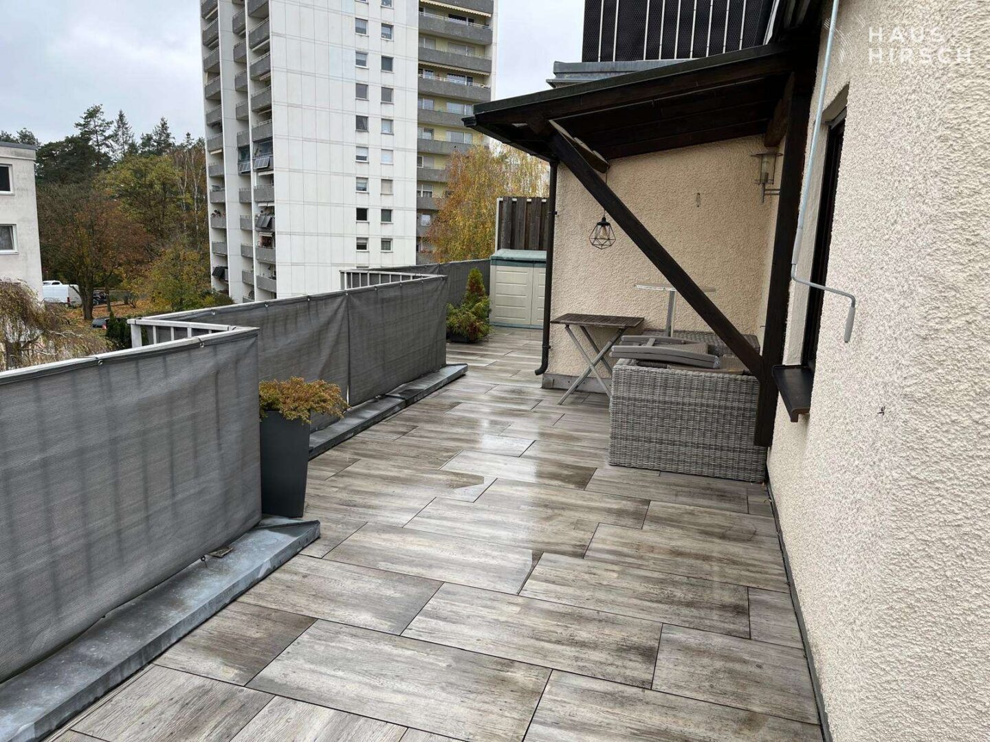 Entspannen Sie sich auf der großzügigen Terrasse und genießen Sie den Blick ins Grüne.
