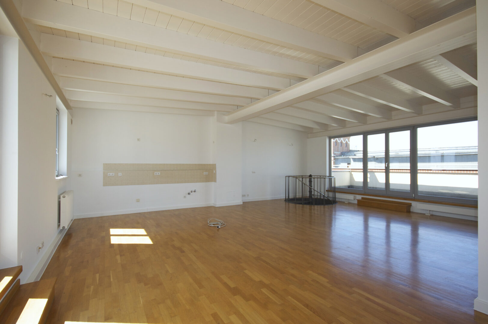 Zur Wohnung gehören drei Abstellräume im Erdgeschoss, optional können Sie auch zwei Tiefgaragenstellplätze erwerben. Erleben Sie ein einmaliges Wohngefühl in diesem außergewöhnlichen Penthouse mit Loftcharakter in den historischen Buntgarnwerken.