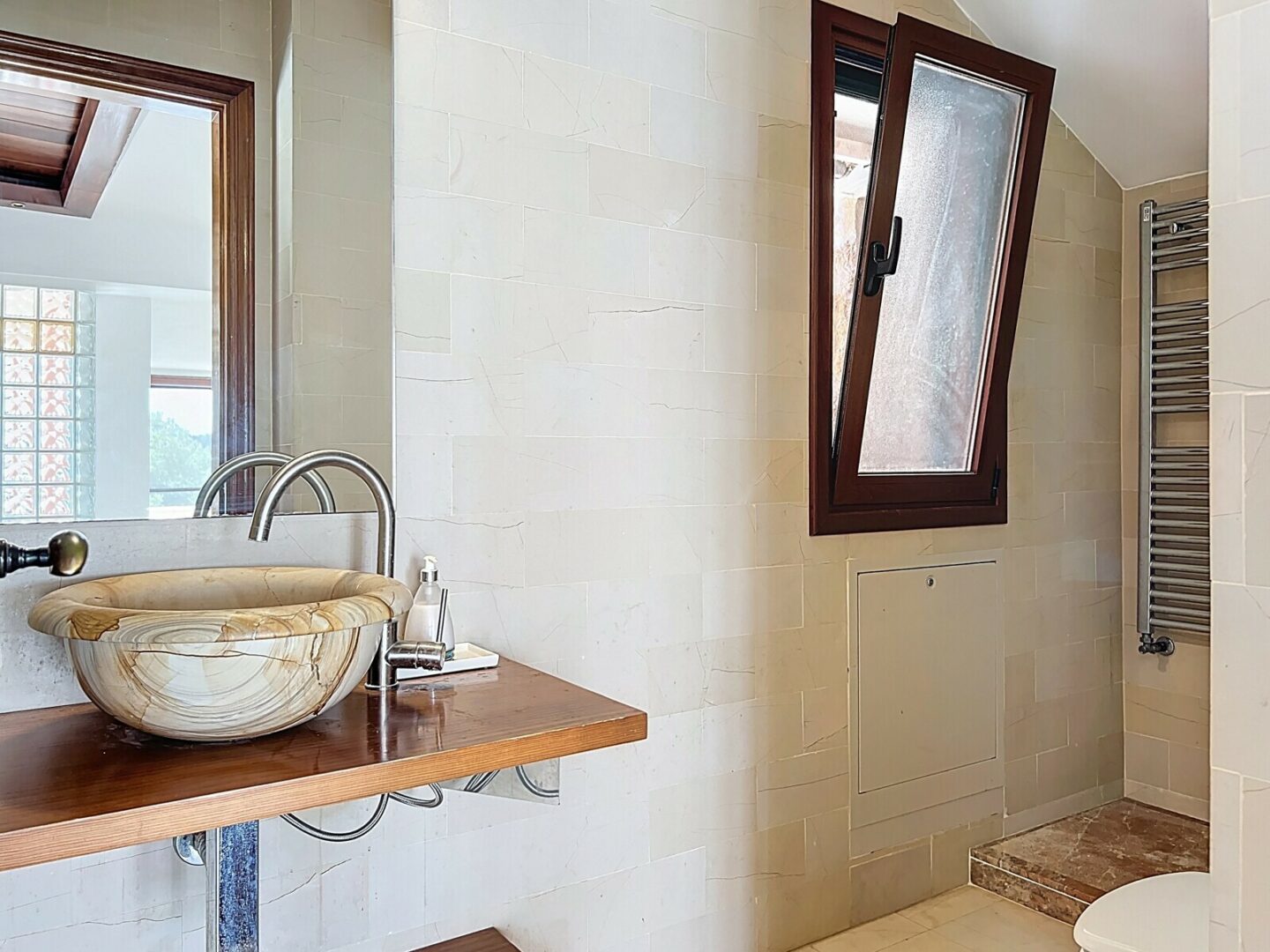 Das 1995 erbaute und in ausgezeichnetem Zustand befindliche Anwesen bietet eine Fläche von 758 m² auf einem weitläufigen Grundstück von 16.764 m², das von Pinien, Obstbäumen und mediterraner Vegetation umgeben ist. Die hochwertigen Ausstattungen wie Marmorböden, Fußbodenheizung, Climalit-Fenster und Klimaanlage mit Deckenventilatoren in allen Schlafzimmern sorgen für Komfort das ganze Jahr über.