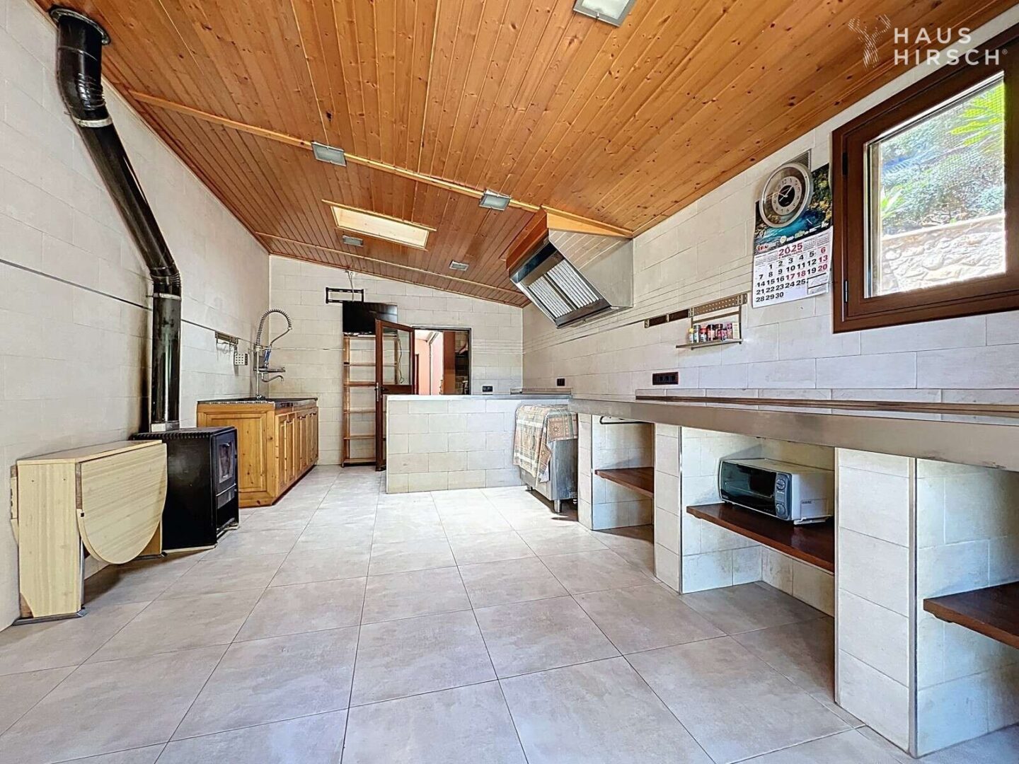 Einen 21 m² großen Weinkeller mit direktem Zugang zur Küche.