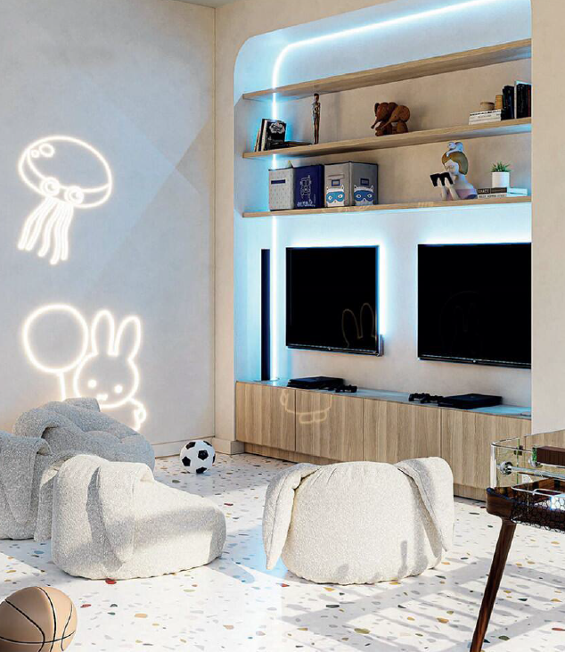 Fitness- und Wellnessliebhaber kommen im voll ausgestatteten Fitnessstudio, im Yogastudio, in den Behandlungsräumen und im Spa/Sauna voll auf ihre Kosten. Die Lounge für die Bewohner, der Kino- und Filmraum und das Spielzimmer bieten reichlich Gelegenheit zur Unterhaltung und Entspannung.