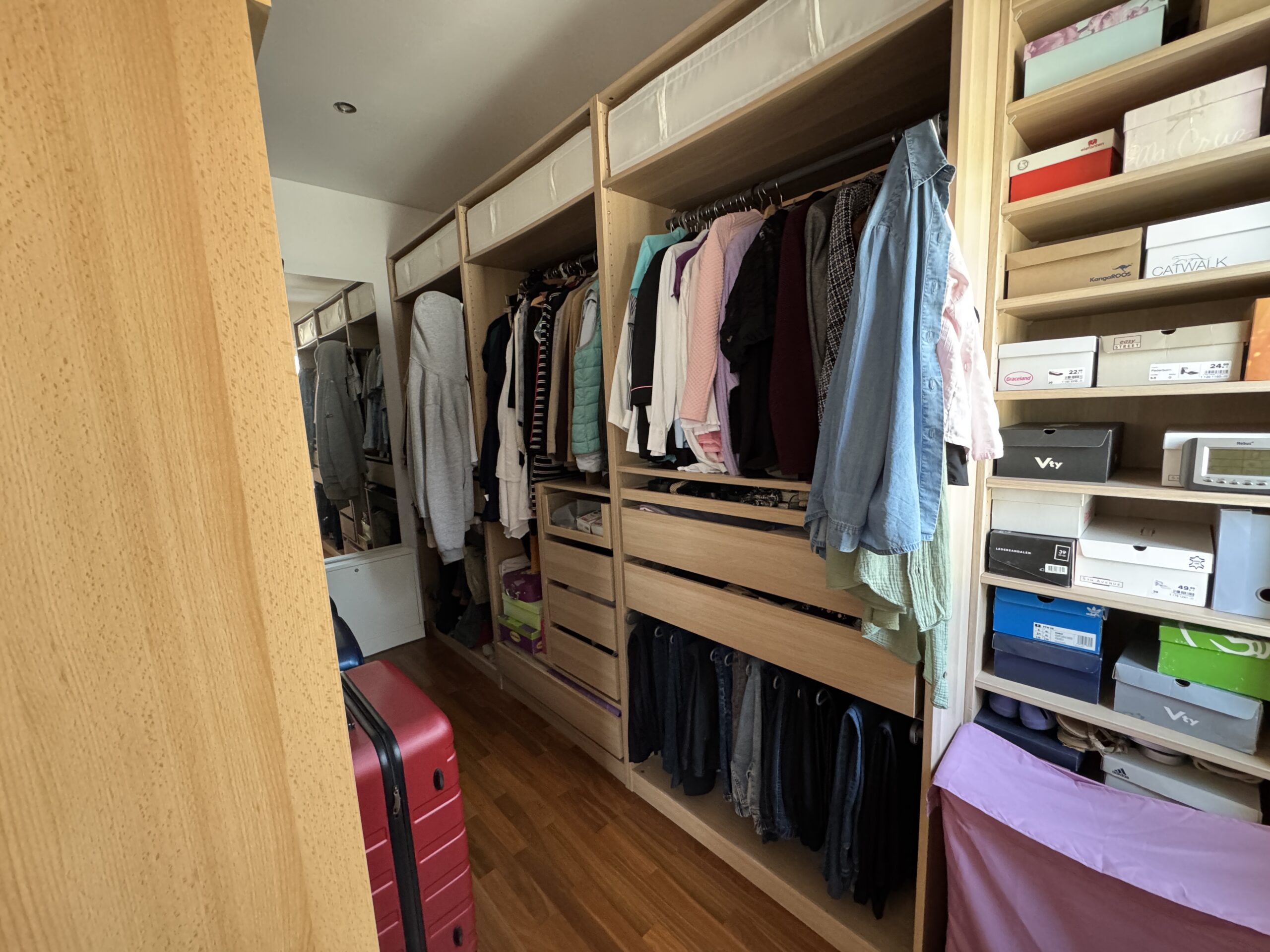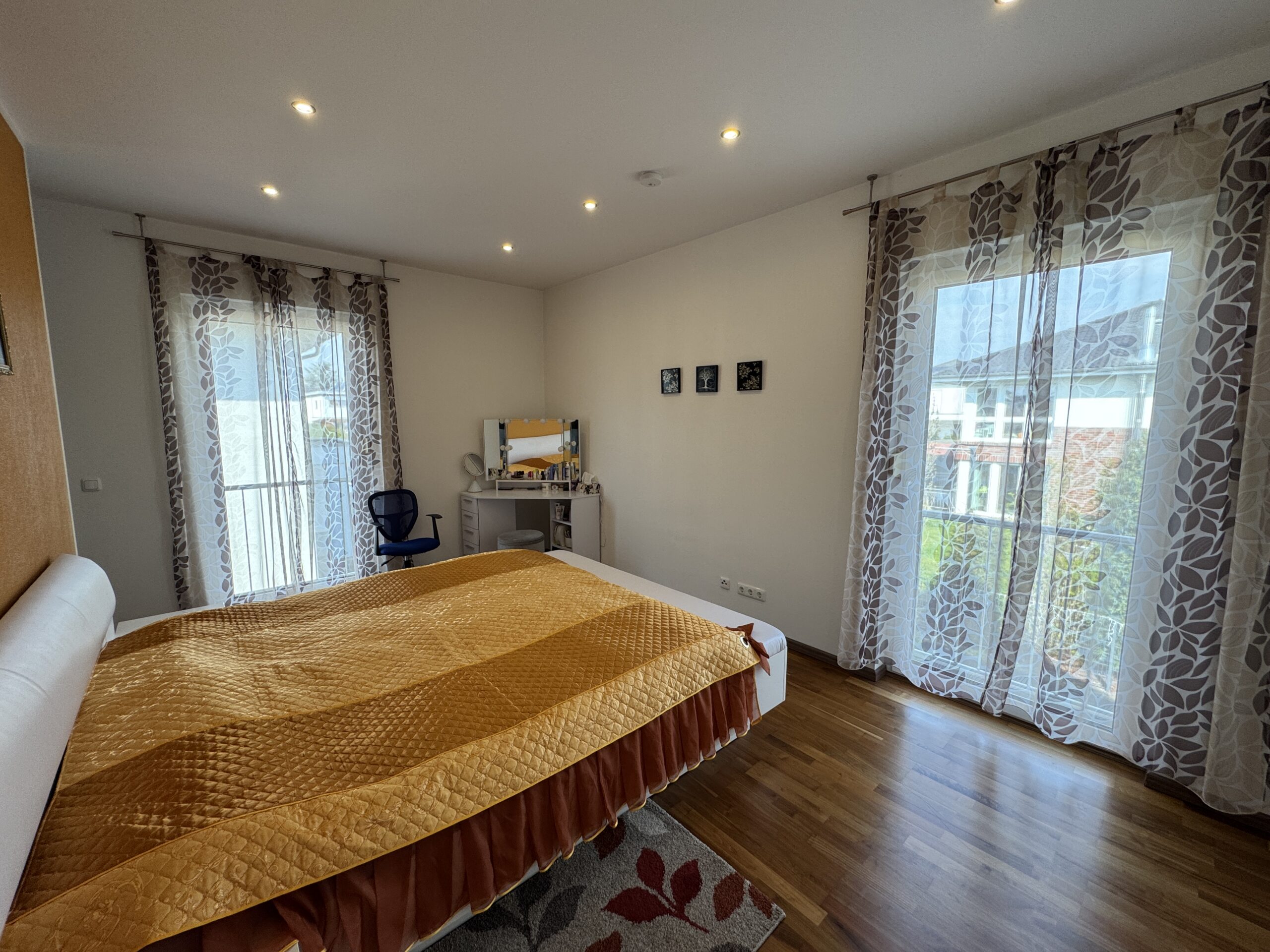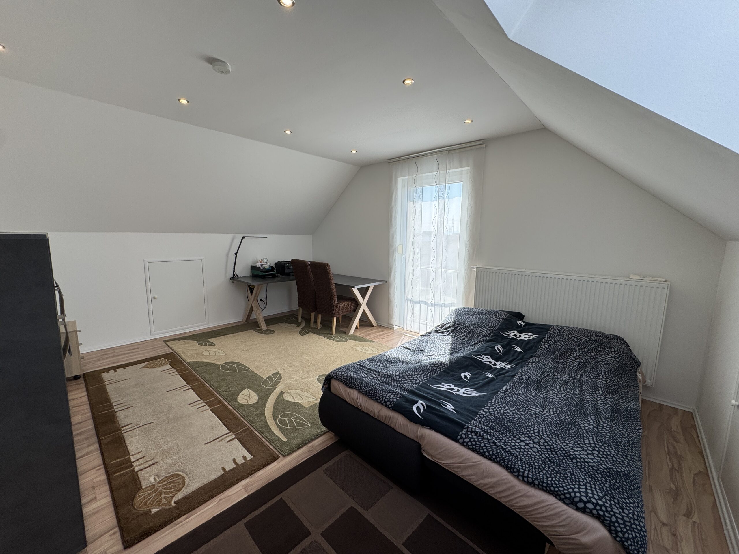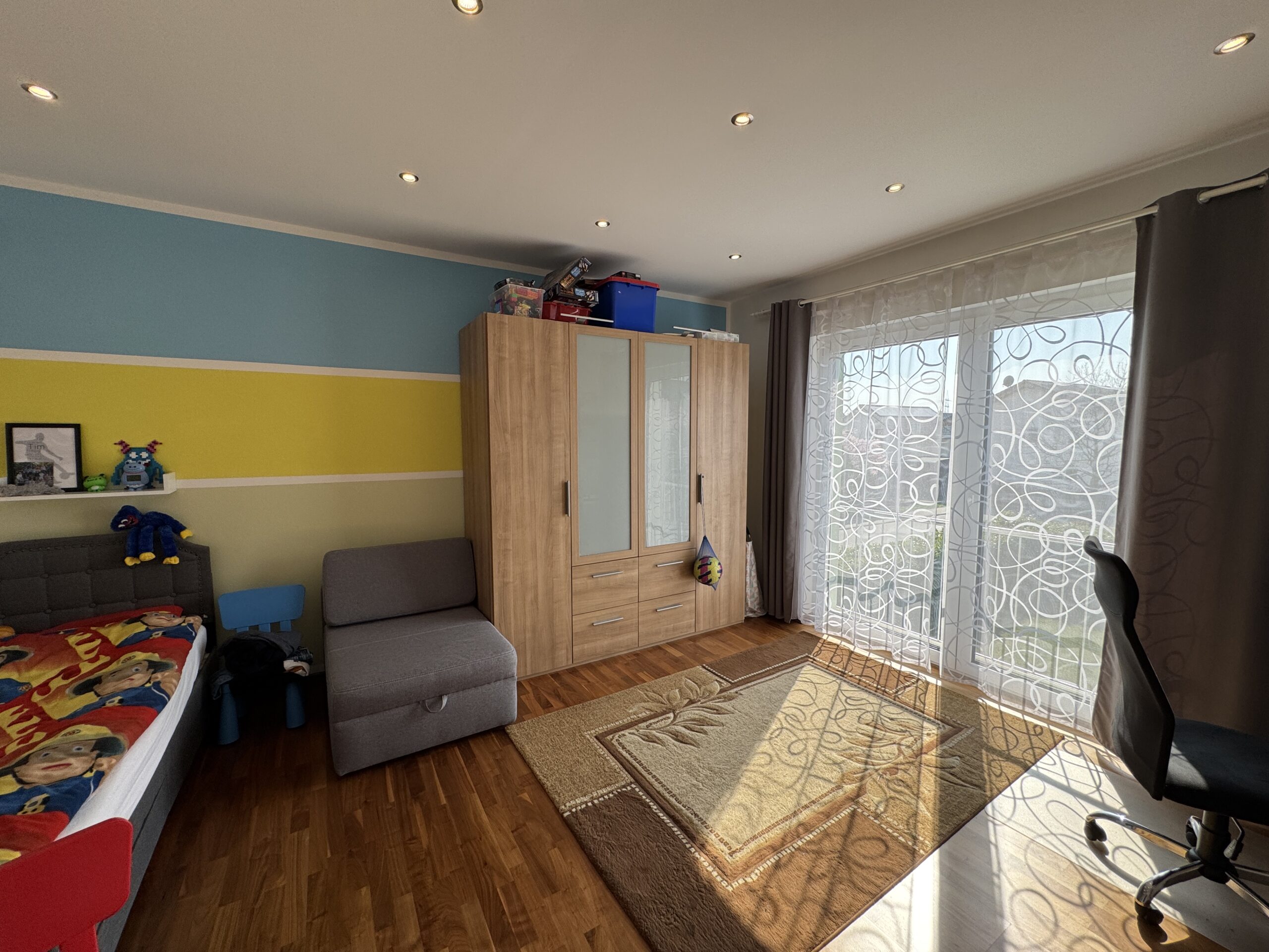 Das Elternschlafzimmer besticht zusätzlich durch seinen begehbaren Kleiderschrank.