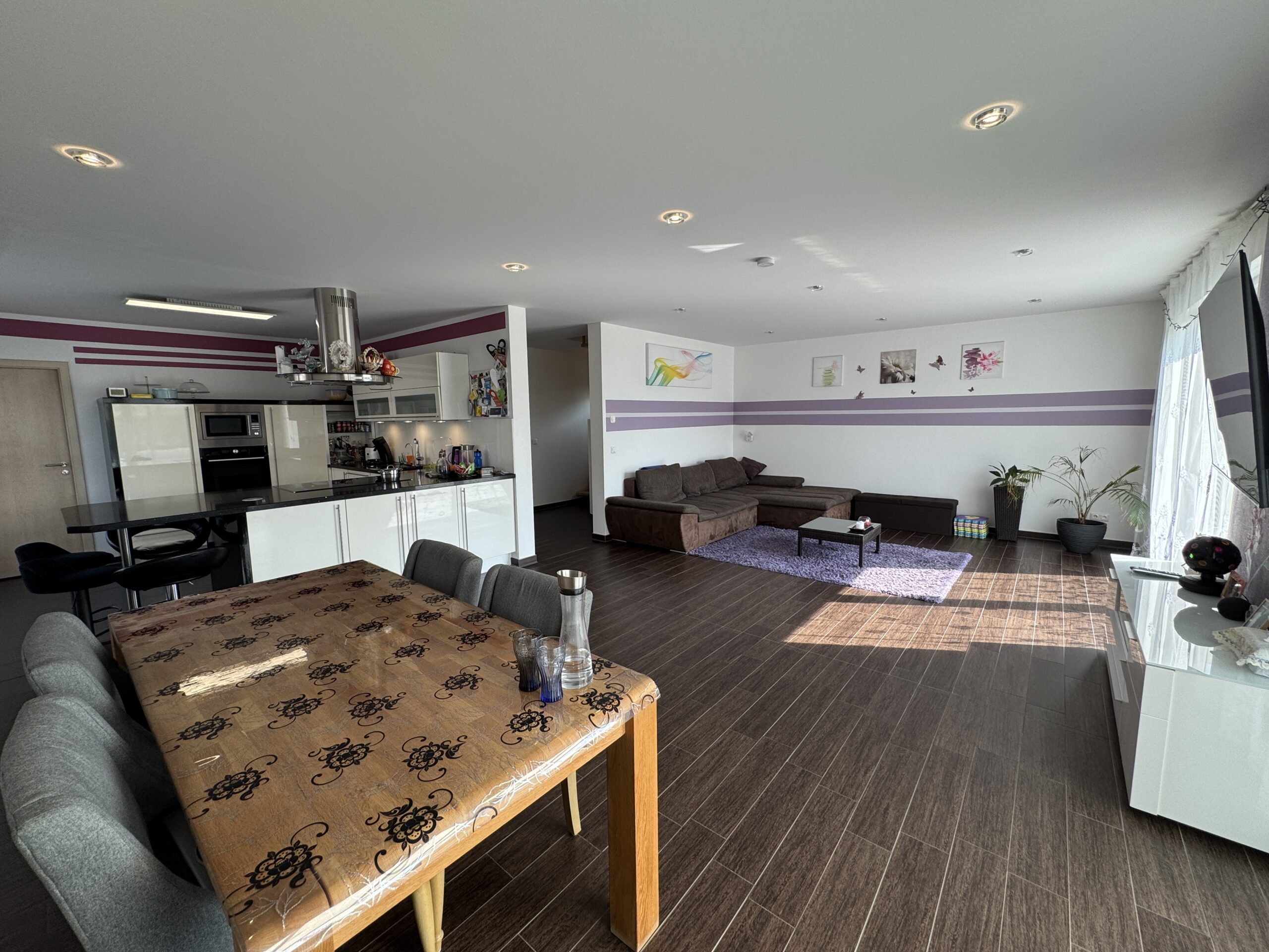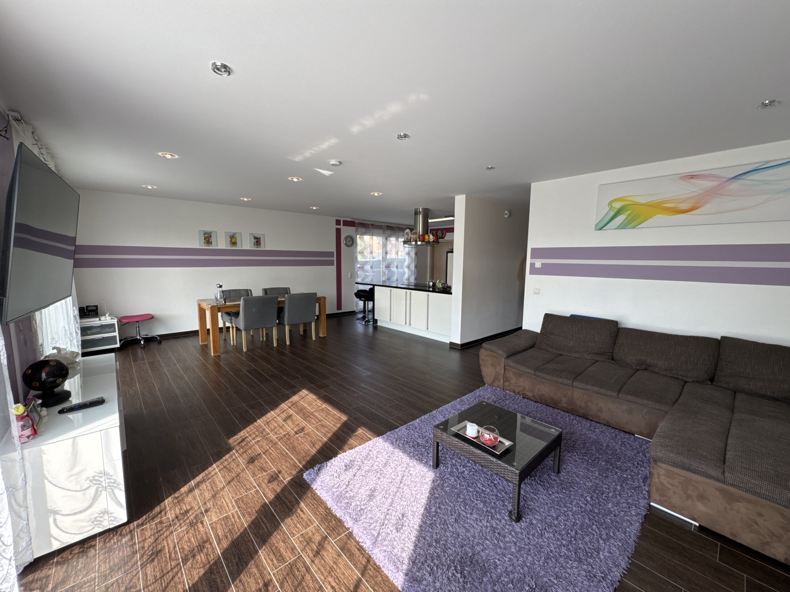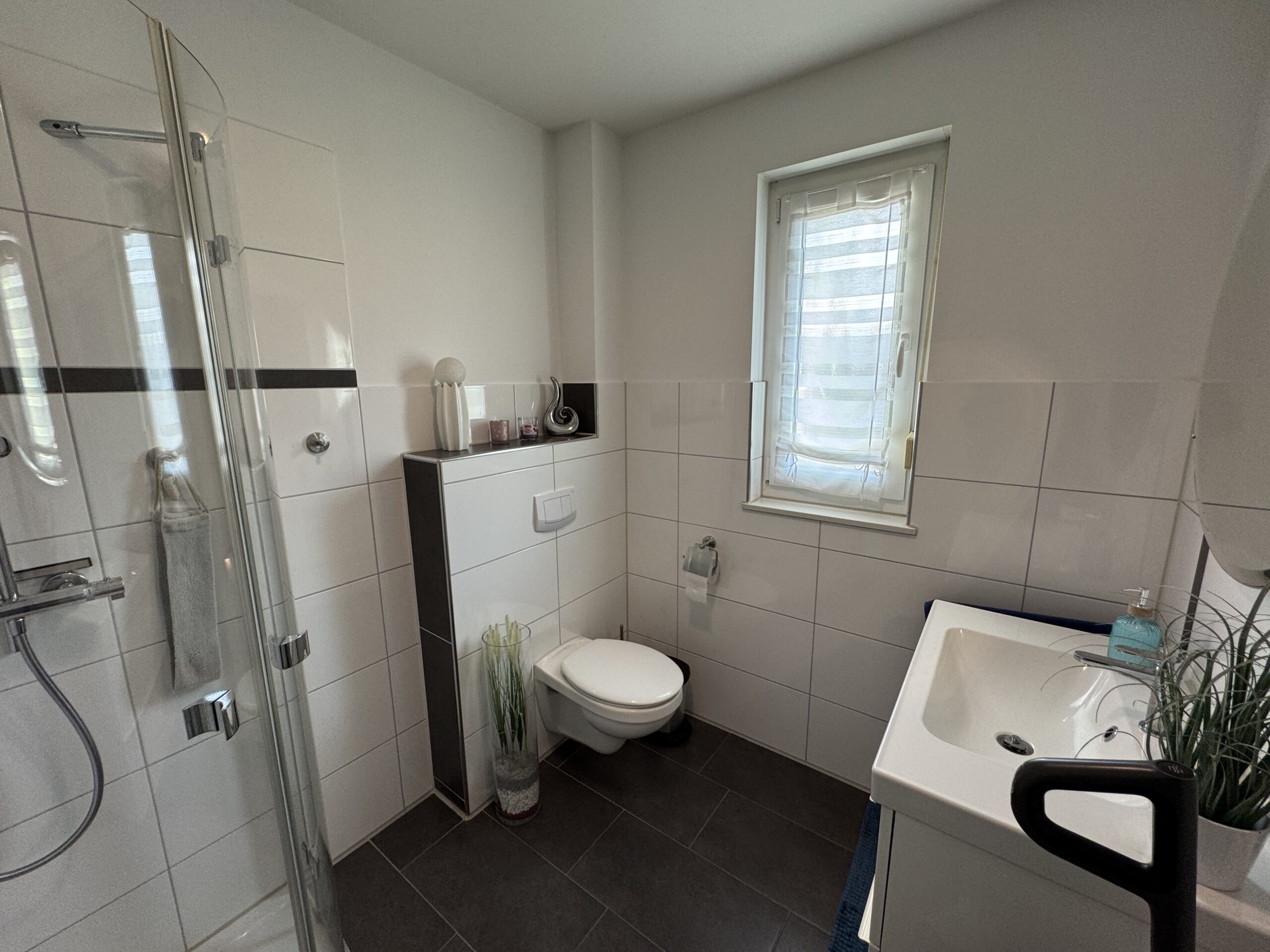 Die Heizung erfolgt über eine effiziente Fußbodenheizung. Im Bad überzeugen hochwertige Fliesen und moderne Armaturen.