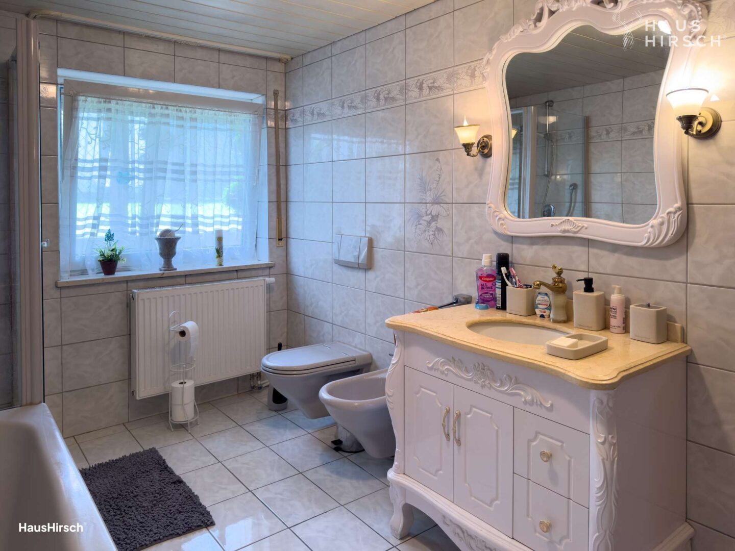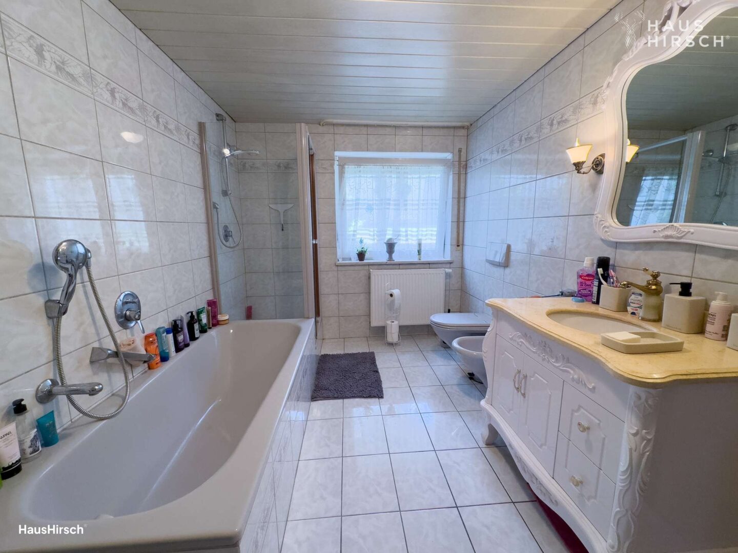 Tageslichtbad mit Dusche, Badewanne, Bidet, WC & Waschtisch
