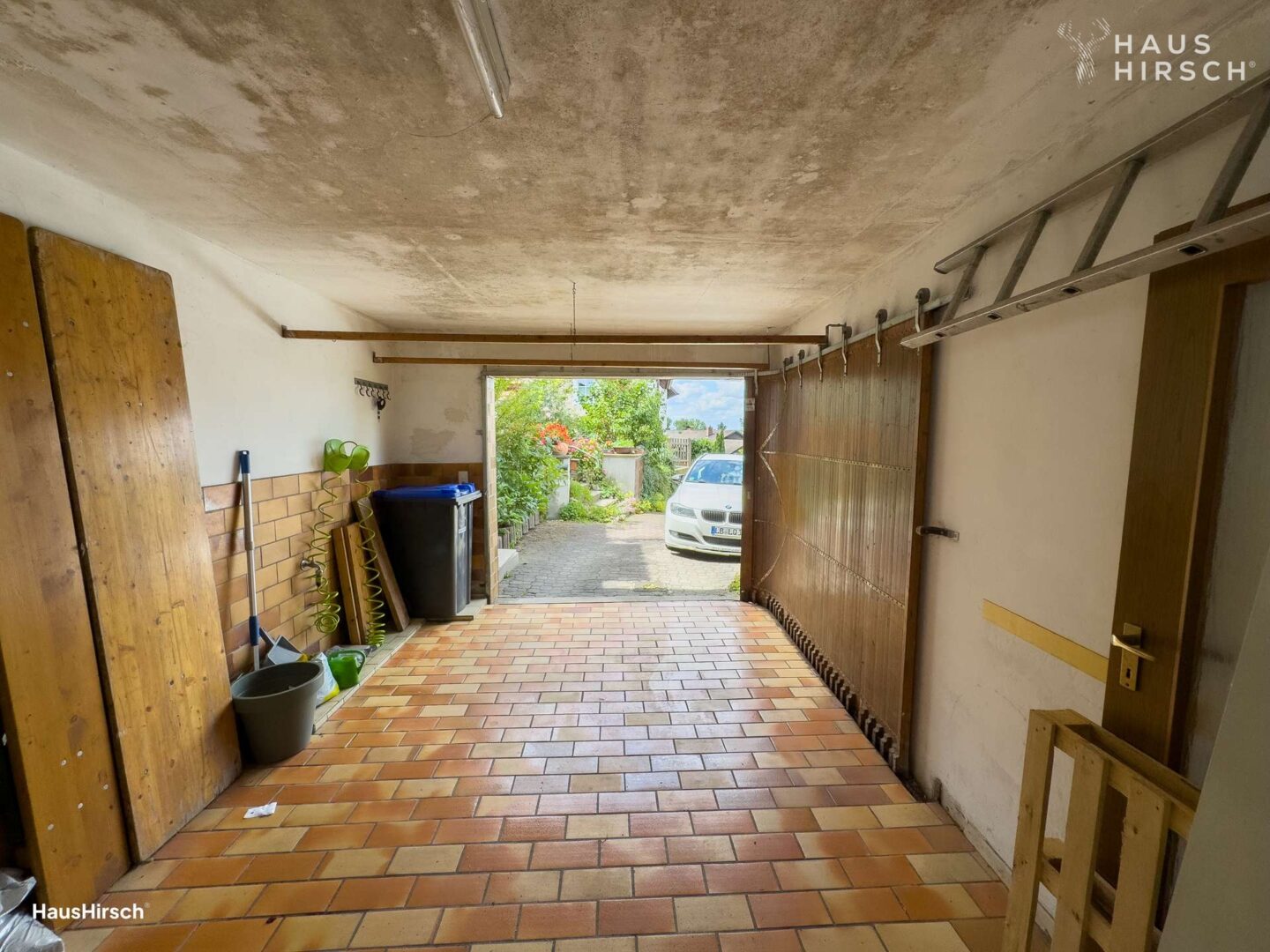 Zugang zur Garage mit zusätzlichem Stauraum