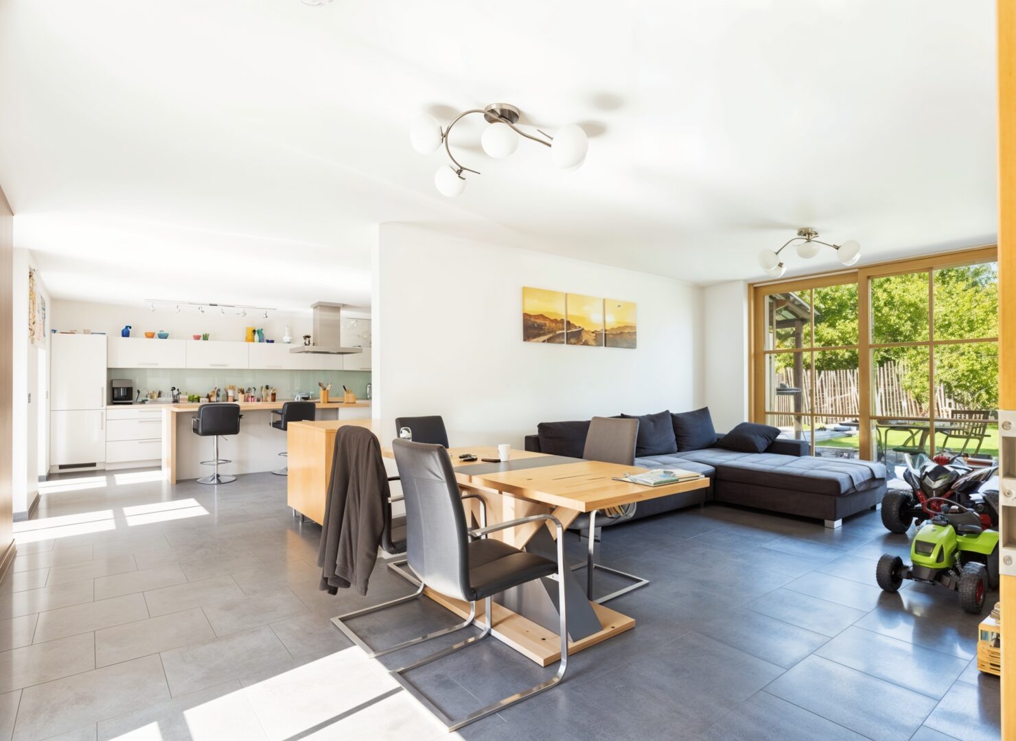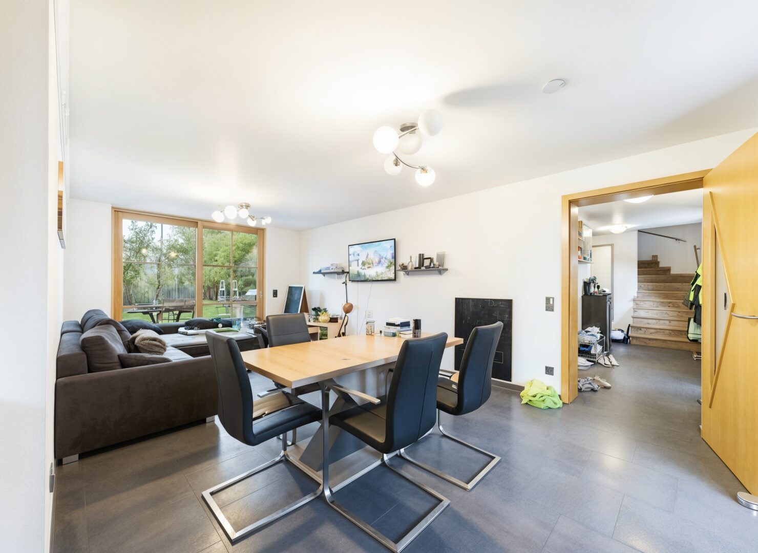 Open-Space-Bereich mit Esszimmer, Wohnzimmer & Arbeits-/Gästezimmer