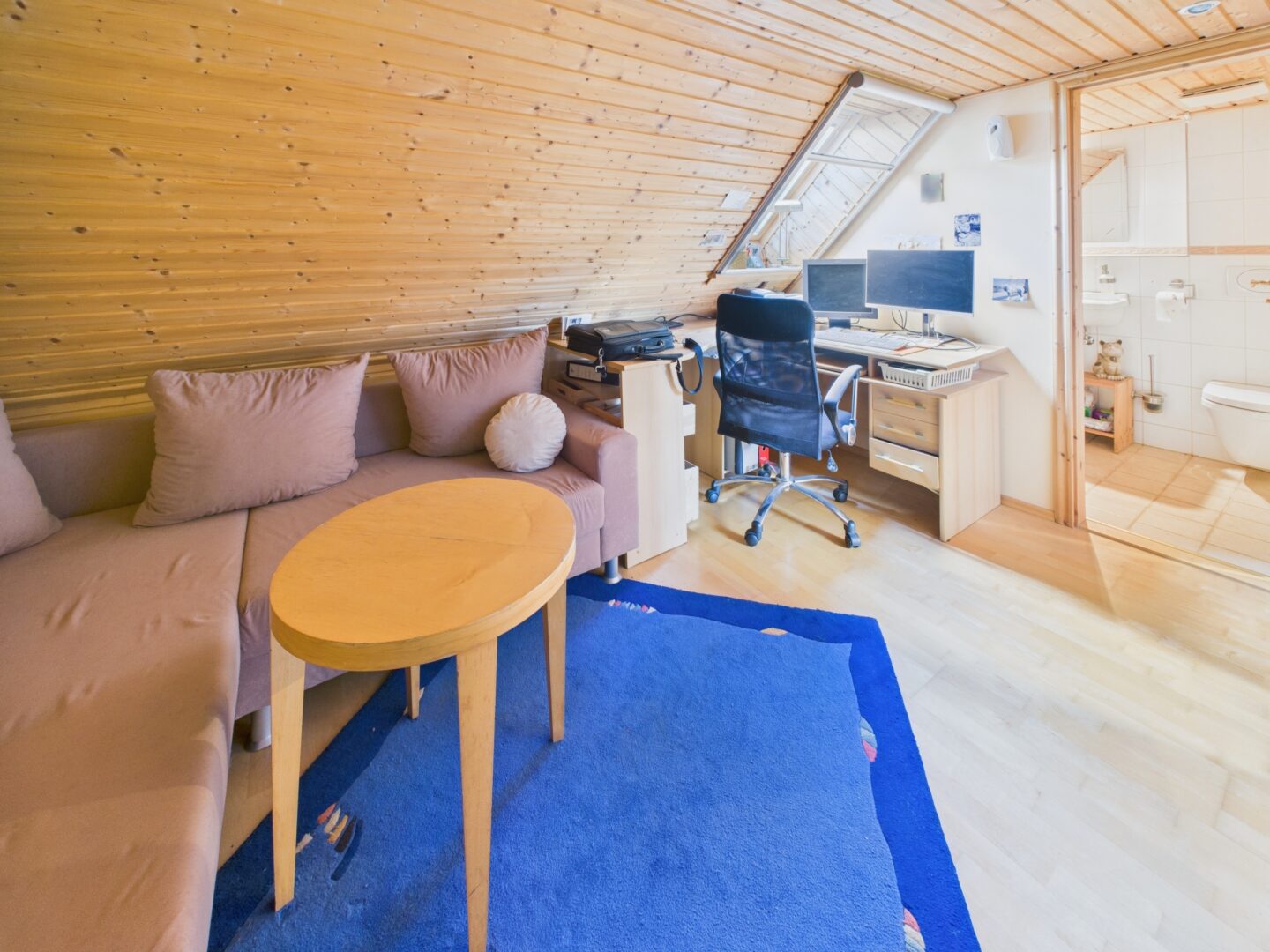 Das Dachgeschoss besticht durch seine Flexibilität. Zwei weitere Zimmer lassen sich ideal als Gästezimmer, Kinderzimmer oder Arbeitsbereiche gestalten. Besonders die offene Diele bietet zusätzlichen Wohn- oder Stauraum und kann optimal als Homeoffice eingerichtet werden. Ein kleines WC auf dieser Etage rundet das Raumkonzept ab und macht das DG zu einer vielseitig nutzbaren Einheit.