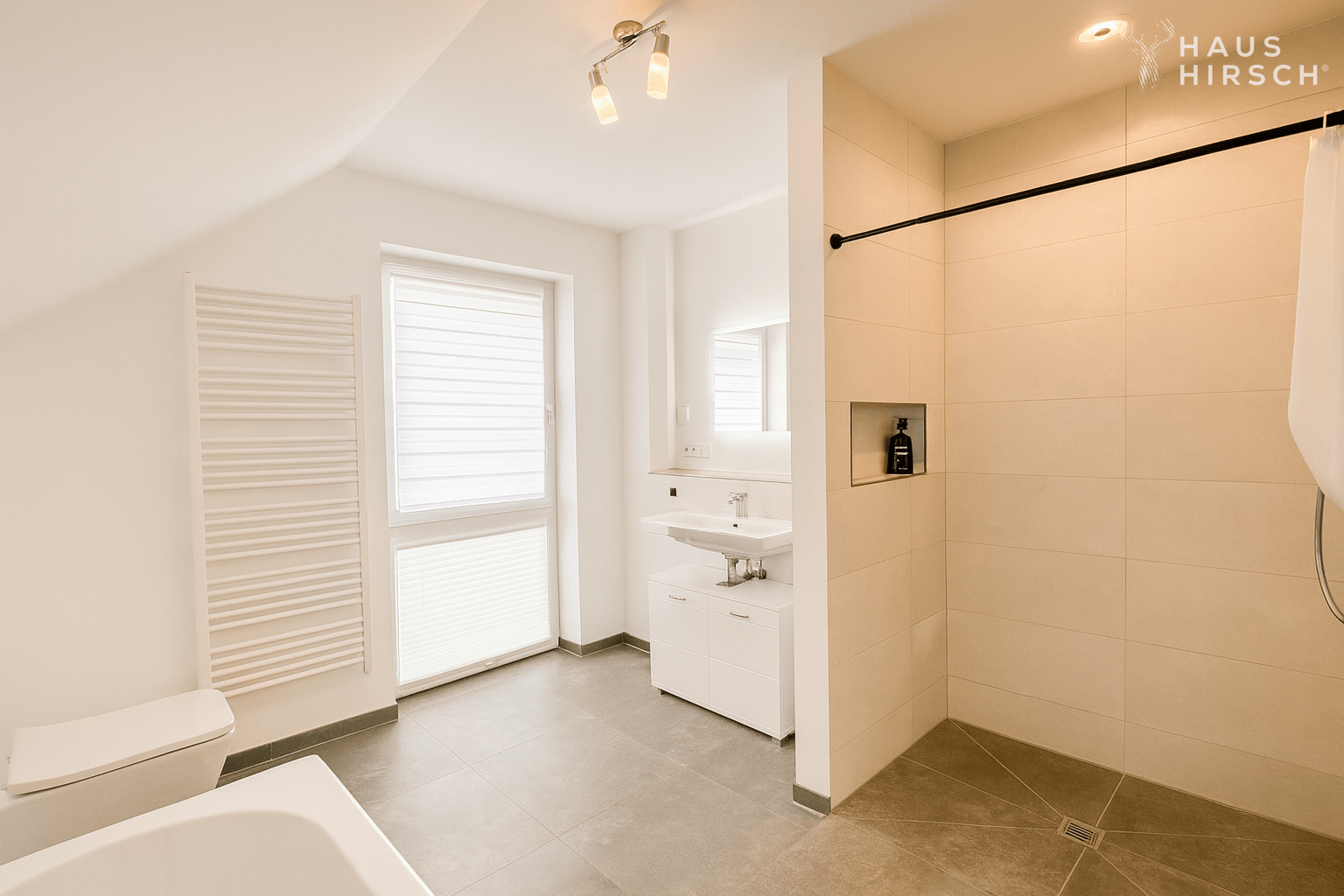 Im Obergeschoss erwarten Sie drei Schlafzimmer, wovon eines mit einfachen Umbaumaßnahmen problemlos in ein viertes Schlafzimmer bzw. Homeoffice umgewandelt werden kann. Das Masterbad im OG verfügt neben einer Badewanne zusätzlich über eine moderne Walk In Dusche.