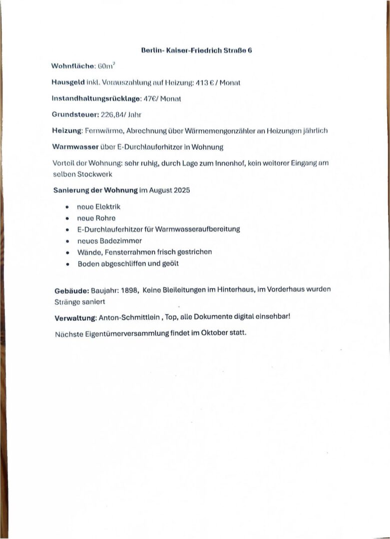 - Hausgeld: 460 €/Monat (inkl. Vorauszahlung auf Heizung und Instandhaltungsrücklage).