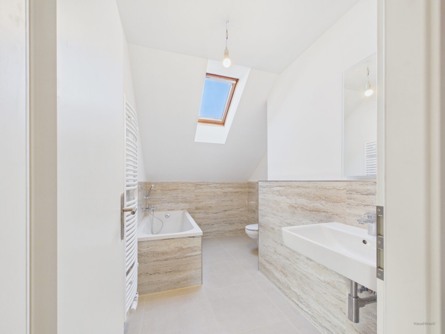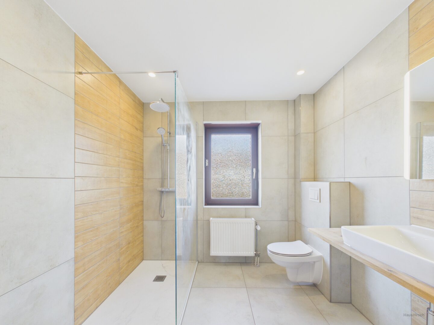 Moderne Bäder: Zwei komplett erneuerte Badezimmer mit zeitgemäßem Design sowie ein separates Gäste-WC.