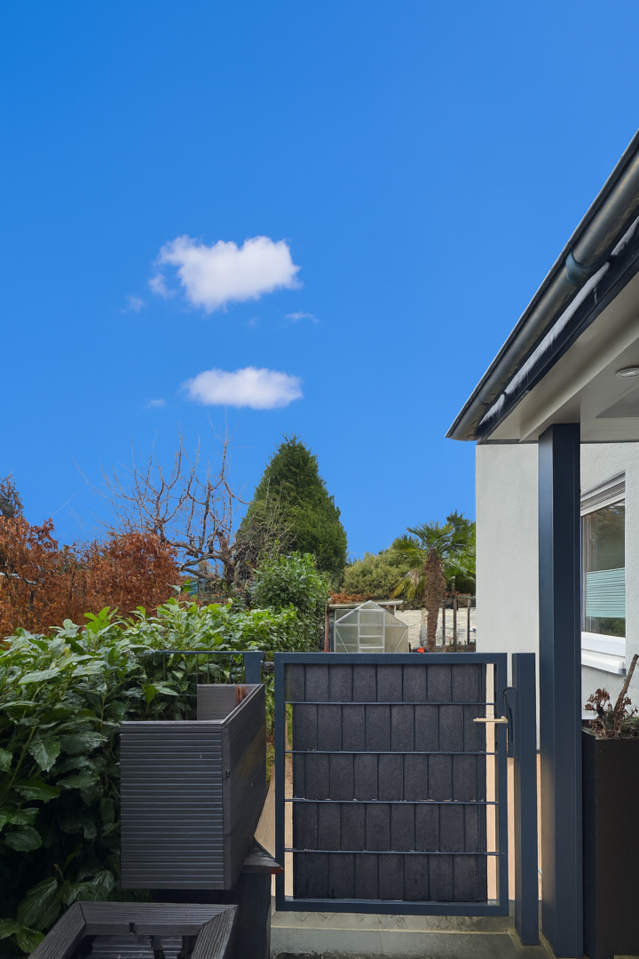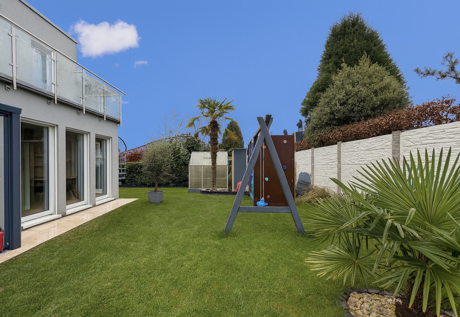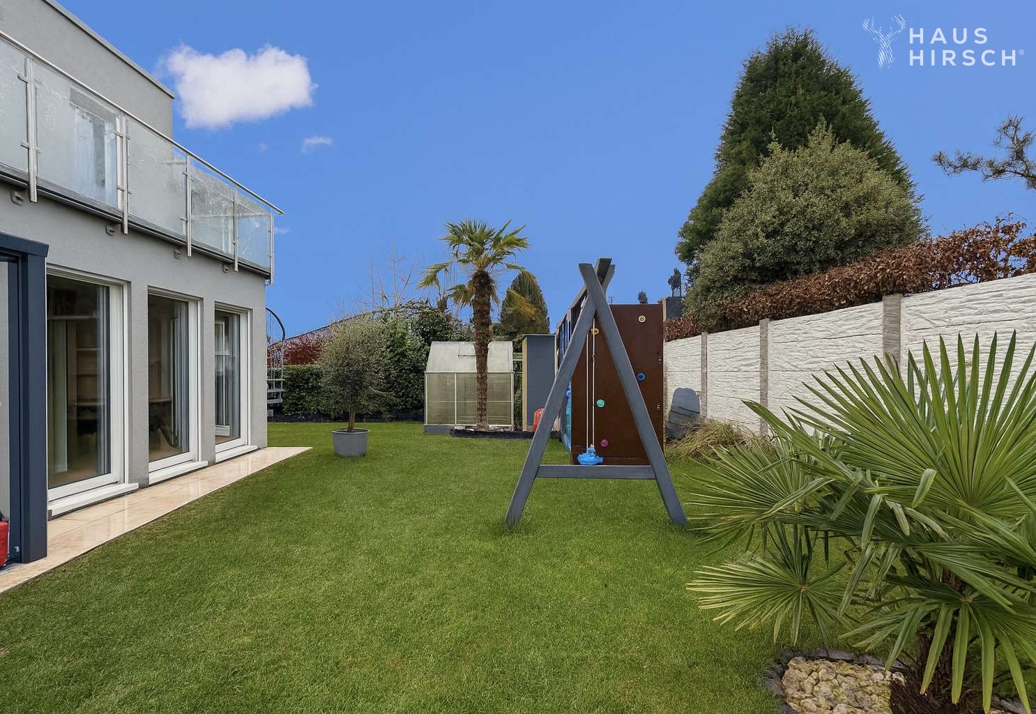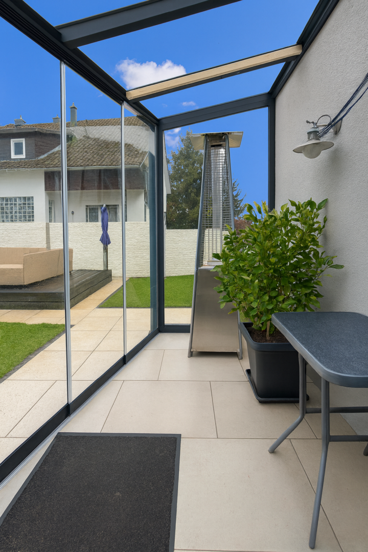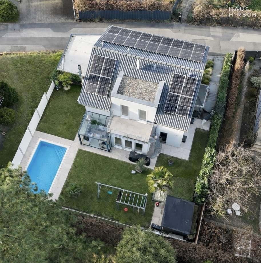 Ein besonderes Highlight ist der 2025 angebaute Wintergarten, der mit seinen großzügigen Glaselementen für lichtdurchflutete Übergänge zwischen Innen- und Außenbereich sorgt. Der liebevoll angelegte Garten begeistert mit viel Grün und einem beheizbaren Pool, der sich in den Wintermonaten sicher abdecken lässt – ein echtes Wohlfühlparadies für Groß und Klein.
