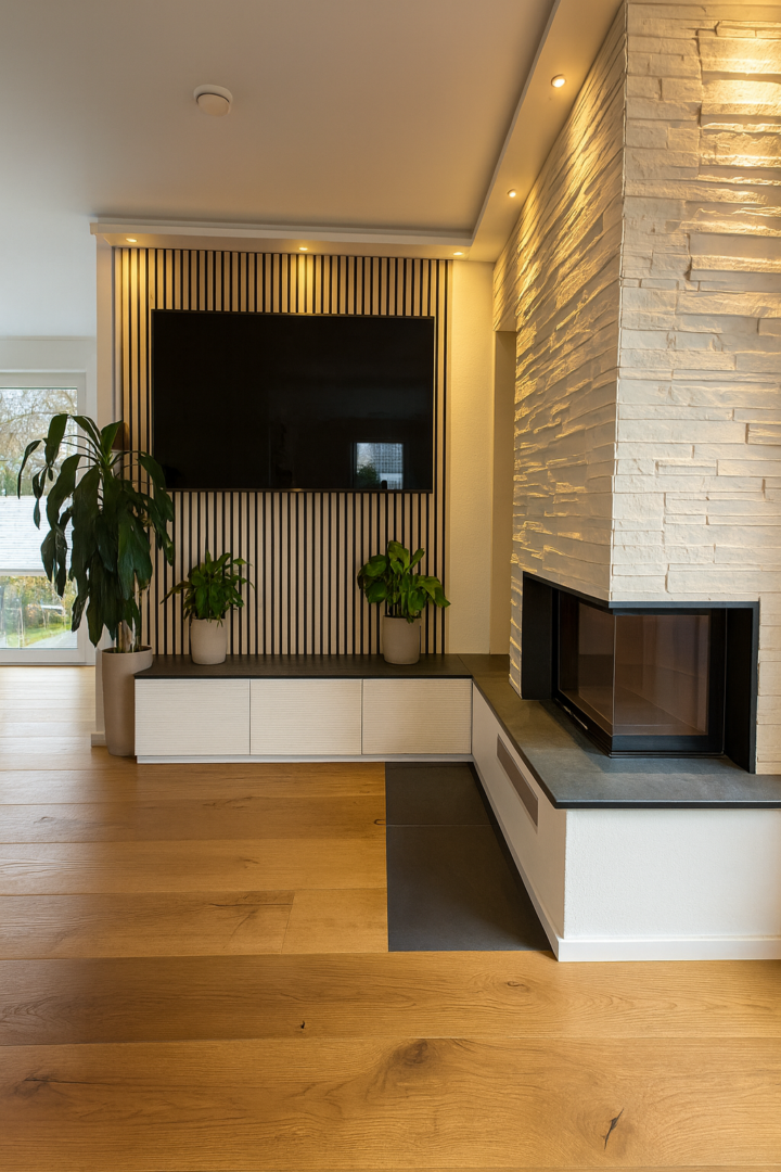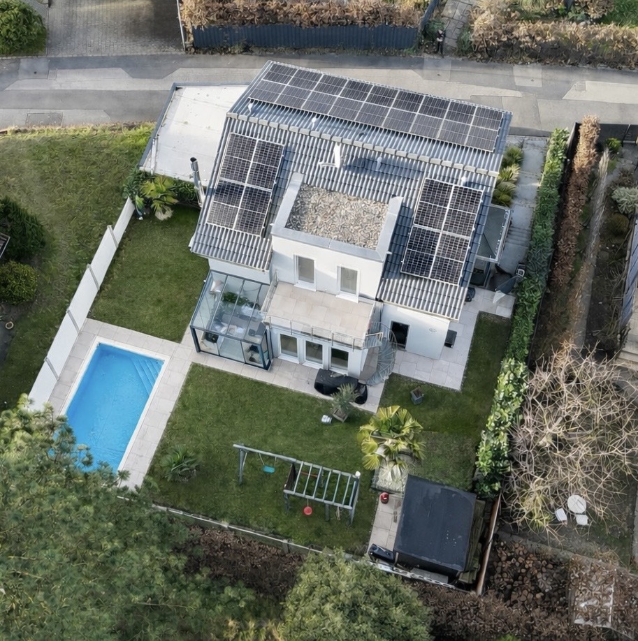Auch technisch ist das Haus auf dem neuesten Stand: Eine Photovoltaikanlage (Baujahr 2021), Solarthermie und eine moderne Luft-Wärmepumpe sorgen gemeinsam mit einer gedämmten Fassade und dreifach verglasten Fenstern für eine vorbildliche Energieeffizienz – ausgezeichnet mit der Energieeffizienzklasse A+. An kalten Tagen spendet zusätzlich ein Kamin angenehme Wärme und schafft eine behagliche Atmosphäre – ganz unabhängig vom zentralen Heizsystem.