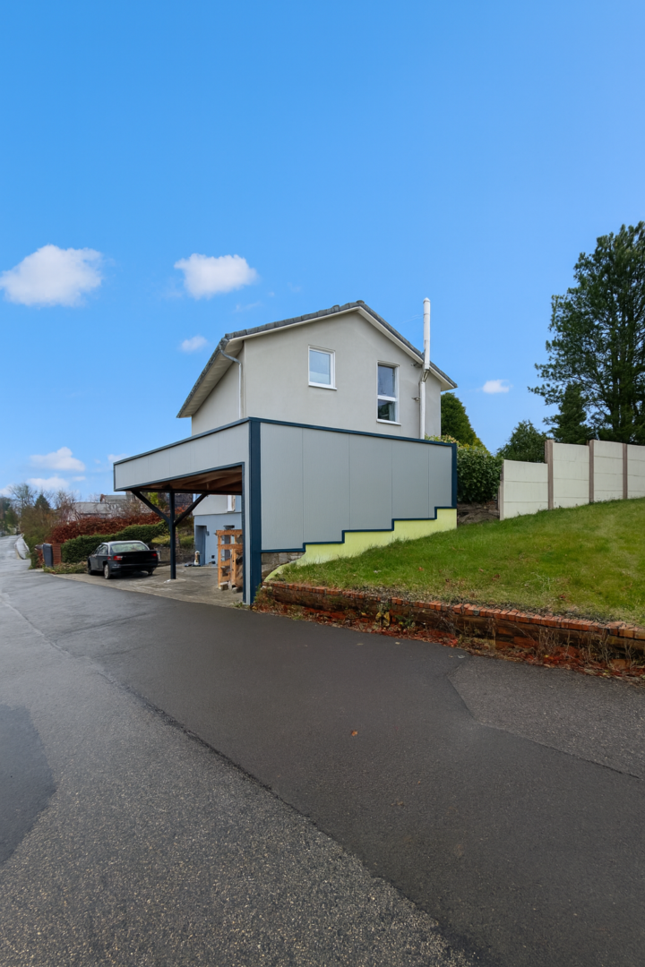 Für Fahrzeuge steht reichlich Platz zur Verfügung: eine Garage, ein Carport mit Platz für zwei Autos sowie ein zusätzlicher Außenstellplatz bieten flexible Parkmöglichkeiten.