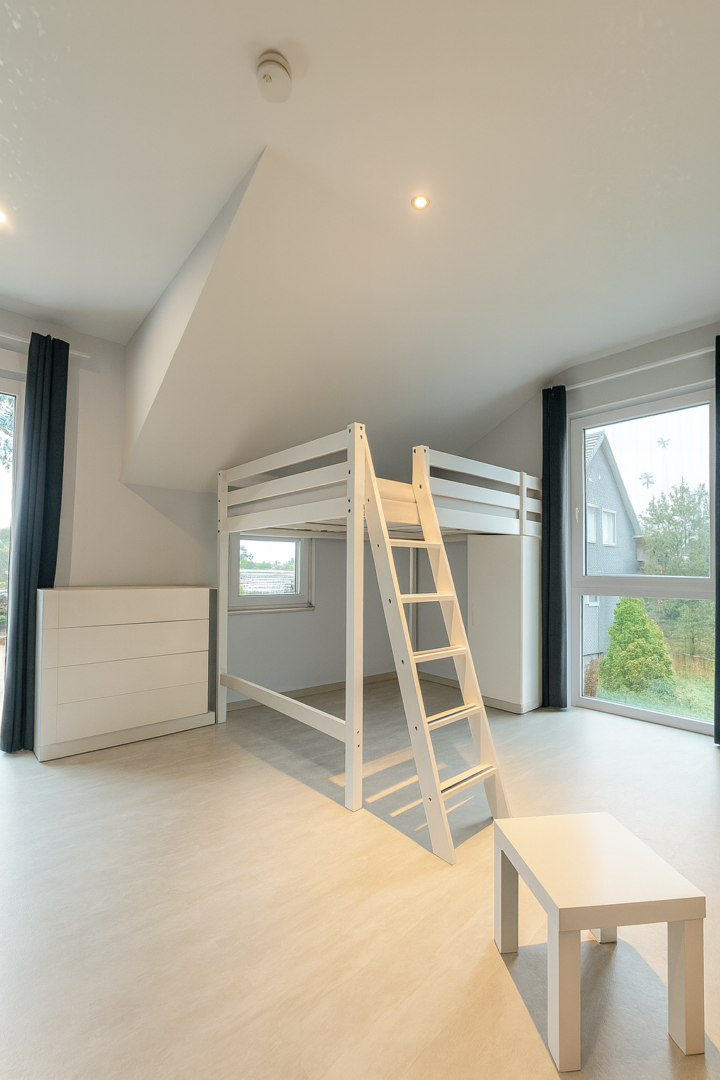 Abgerundet wird das Angebot durch ein ca. 35 m² großes Einliegerapartment mit separatem Eingang. Es verfügt über ein eigenes Duschbad sowie Anschlüsse für eine Küche und eignet sich ideal für Gäste, erwachsene Kinder, Homeoffice oder zur Vermietung.