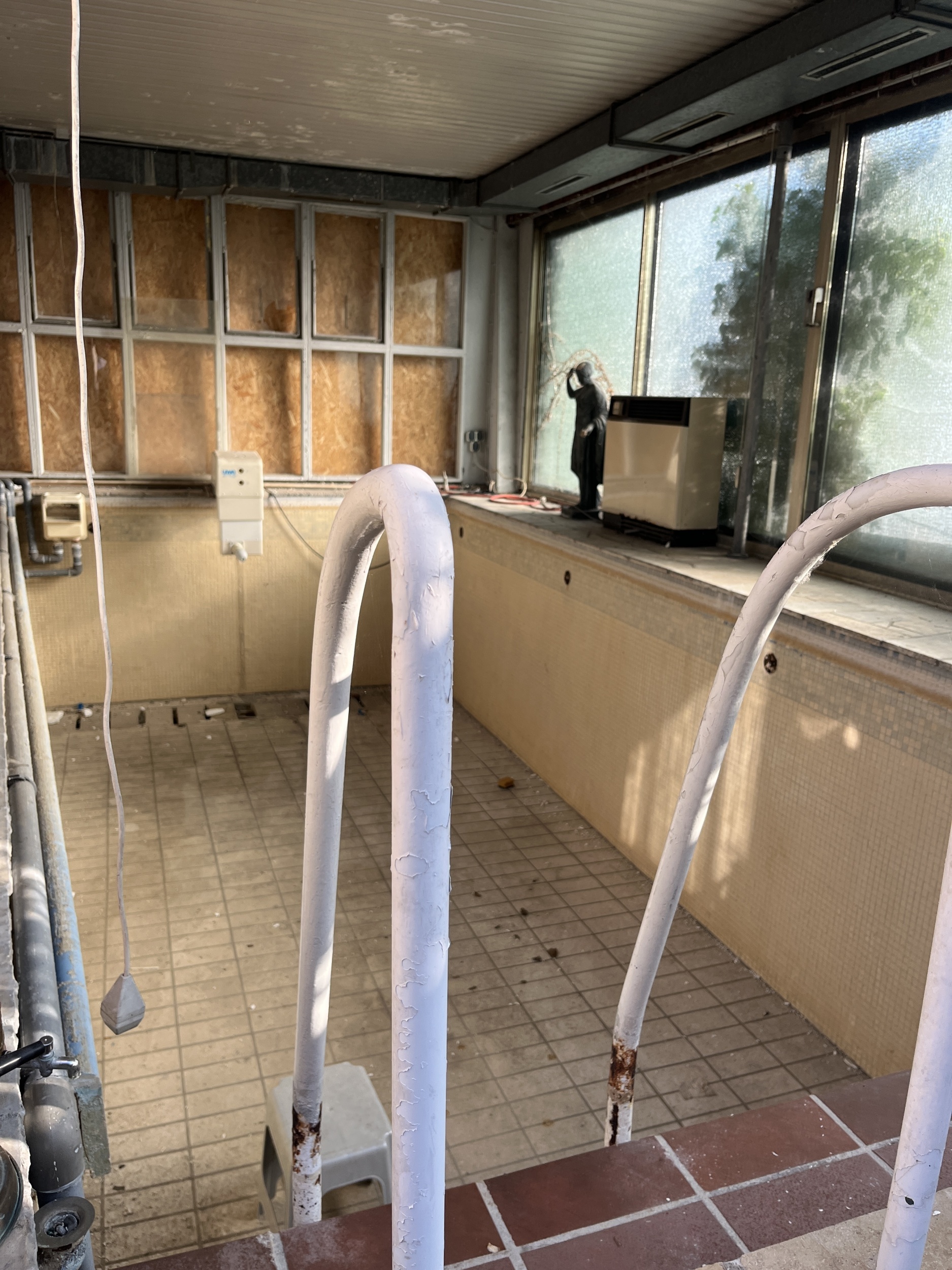 Zusätzliches Nebengebäude: Ausbaufähig zur 2-Zimmer-Wohnung mit Kamin, Dusche – inklusive überdachtem, derzeit nicht aktivem Schwimmbad.