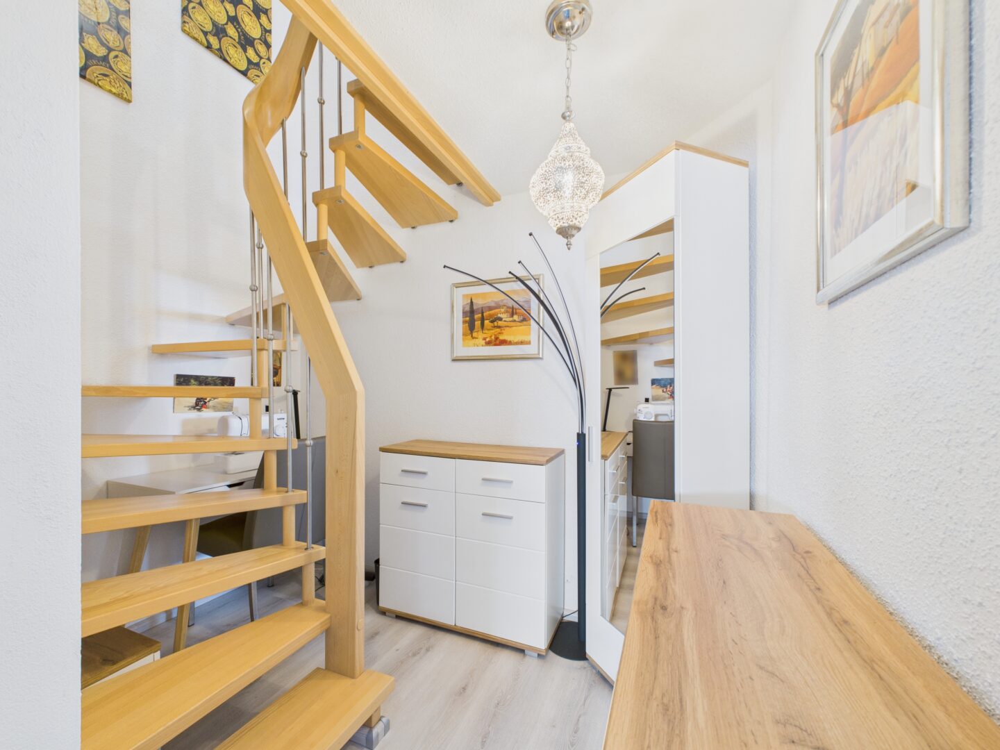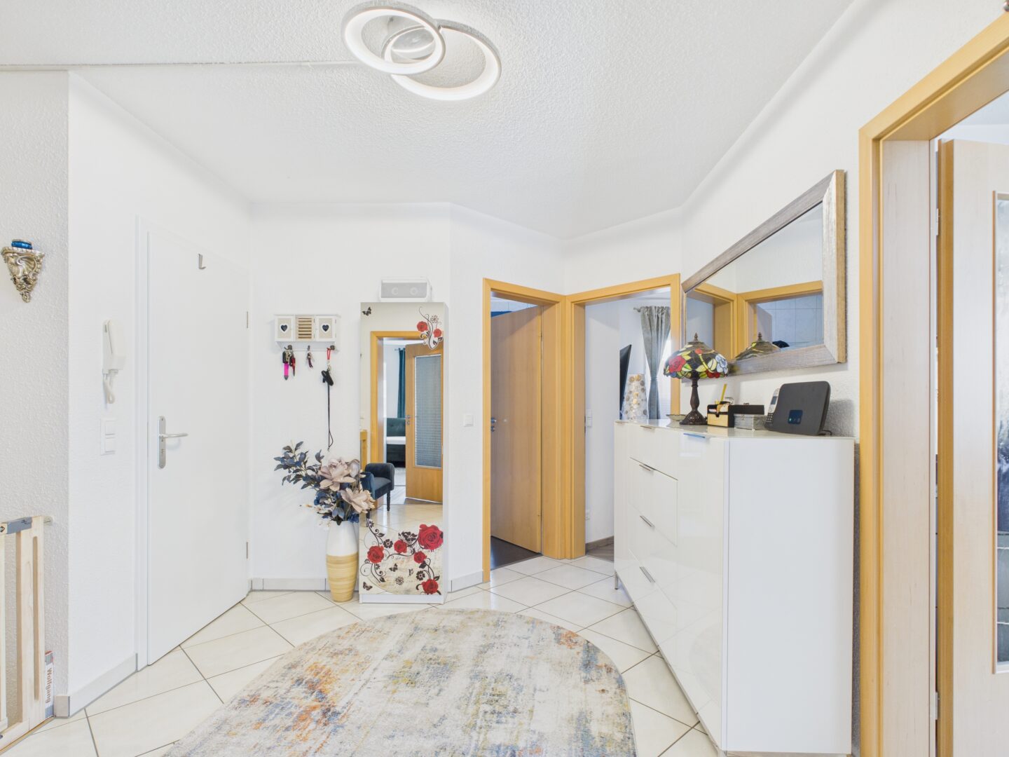 Bereits beim Eintreten fällt die durchdachte Aufteilung und hochwertige Ausstattung ins Auge. Sie betreten das Erdgeschoss wahlweise:
