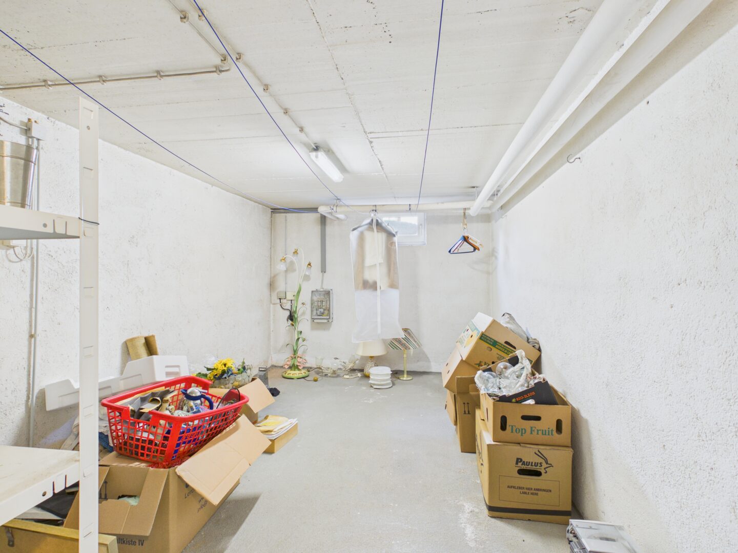 Im Untergeschoss stehen beiden Parteien ca. 80 m² Nutzfläche zur Verfügung: zwei separate Kellerabteile (10,34 m² und 28,5 m²), ein großzügiger Hobbyraum (19,72 m²), Heizraum (9,54 m²) und ein weiterer Kellerraum (12,58 m²). Die hellen, gut proportionierten Räume bieten je nach Genehmigungslage Potenzial zur Umnutzung als Homeoffice, Gästezimmer oder Fitnessraum und würden die nutzbare Gesamtfläche des Hauses erheblich steigern.