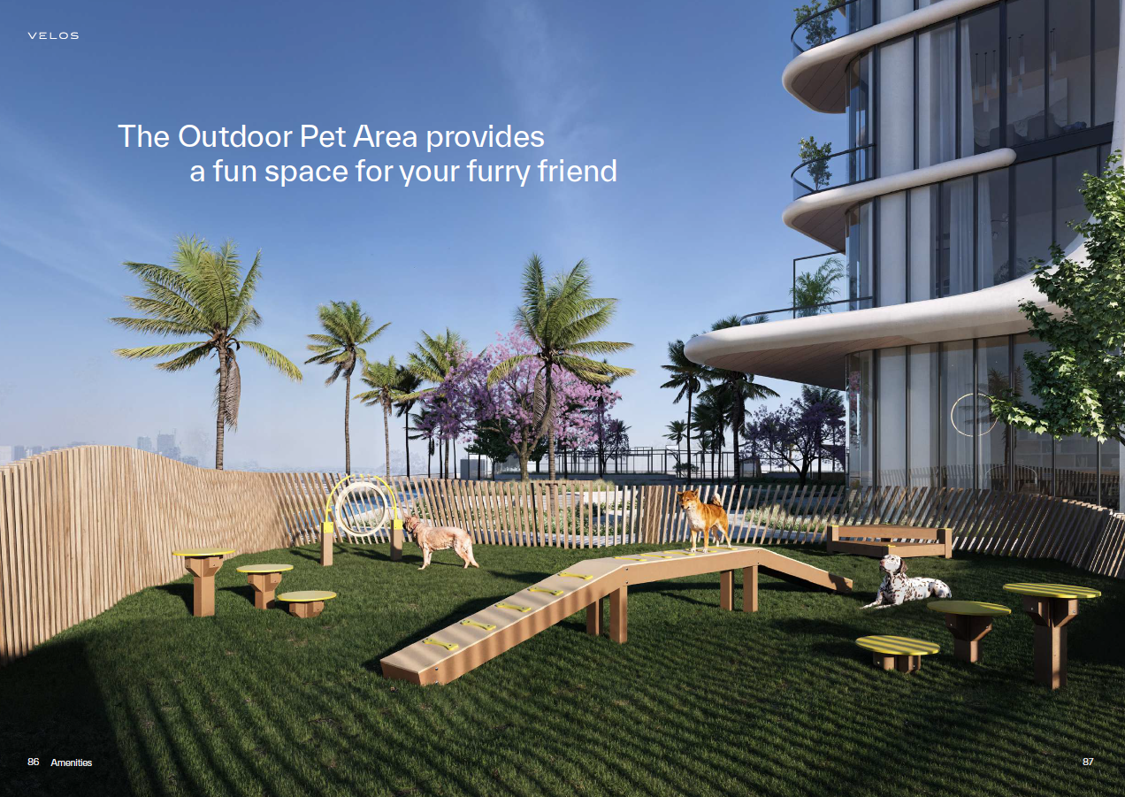 Erholung bietet der japanische Zen-Garten sowie der mediterran gestaltete Garten. Auf dem Dach erwartet Sie ein Infinity-Pool mit Holzdeck, ein Padel- und Basketballplatz sowie ein Bereich für Haustiere. Die Lounge, die Getränkebar und die Co-Working-Zone laden zum Verweilen ein, während Sie sich im Jogging-Track sportlich betätigen können.