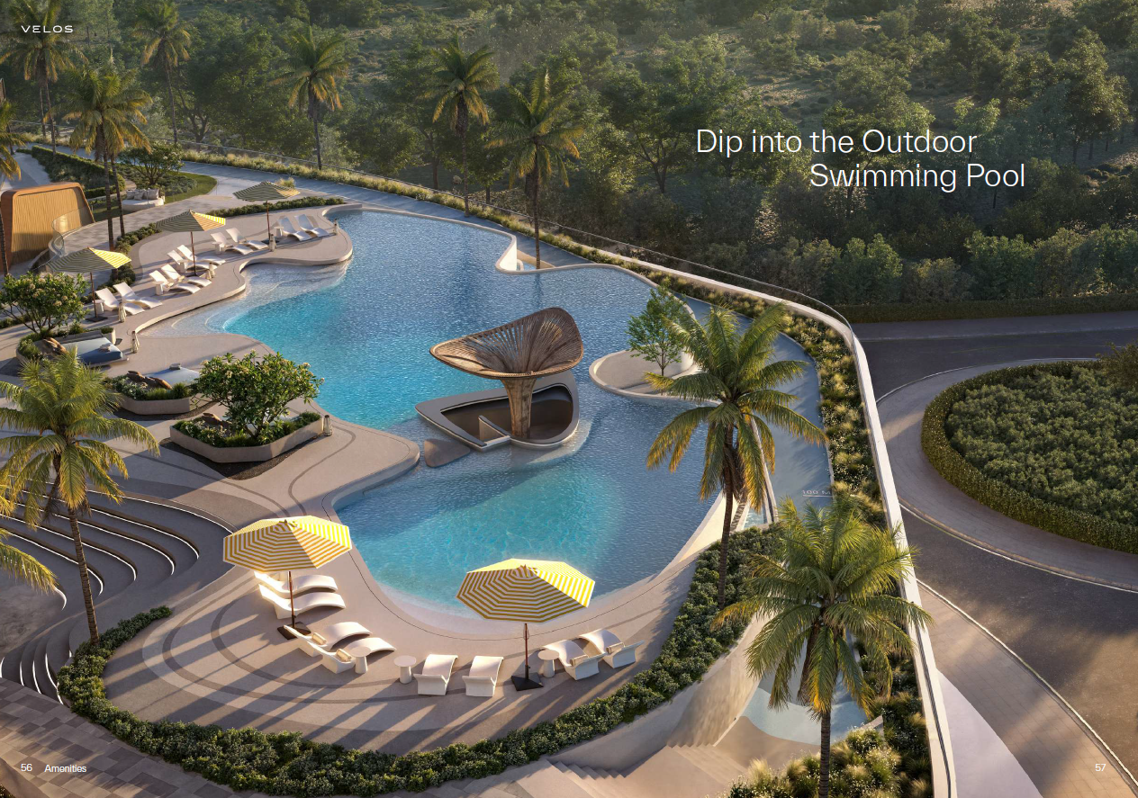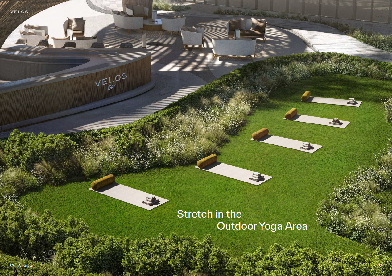 Draußen erwartet Sie ein Outdoor-Kino für gemütliche Abende unter freiem Himmel sowie ein Outdoor-Gym- und Yoga-Bereich für Ihre sportlichen Aktivitäten. Ihre Kinder können sich im Outdoor-Kinder-Pool und Spielbereich austoben, während Sie sich im Multi-Purpose-Bereich vielseitig entfalten können.