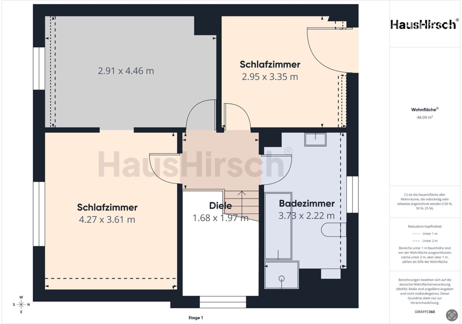 Im Erdgeschoss befinden sich der Wohn- und Essbereich sowie die Küche mit Zugang zur schönen Terrasse und das Gäste-WC. Die Schlafräume und das Bad sind im Obergeschoss untergebracht. Aktuell ist die Aufteilung der Schlafzimmer wie folgt: 1 großes Elternschlafzimmer, eine