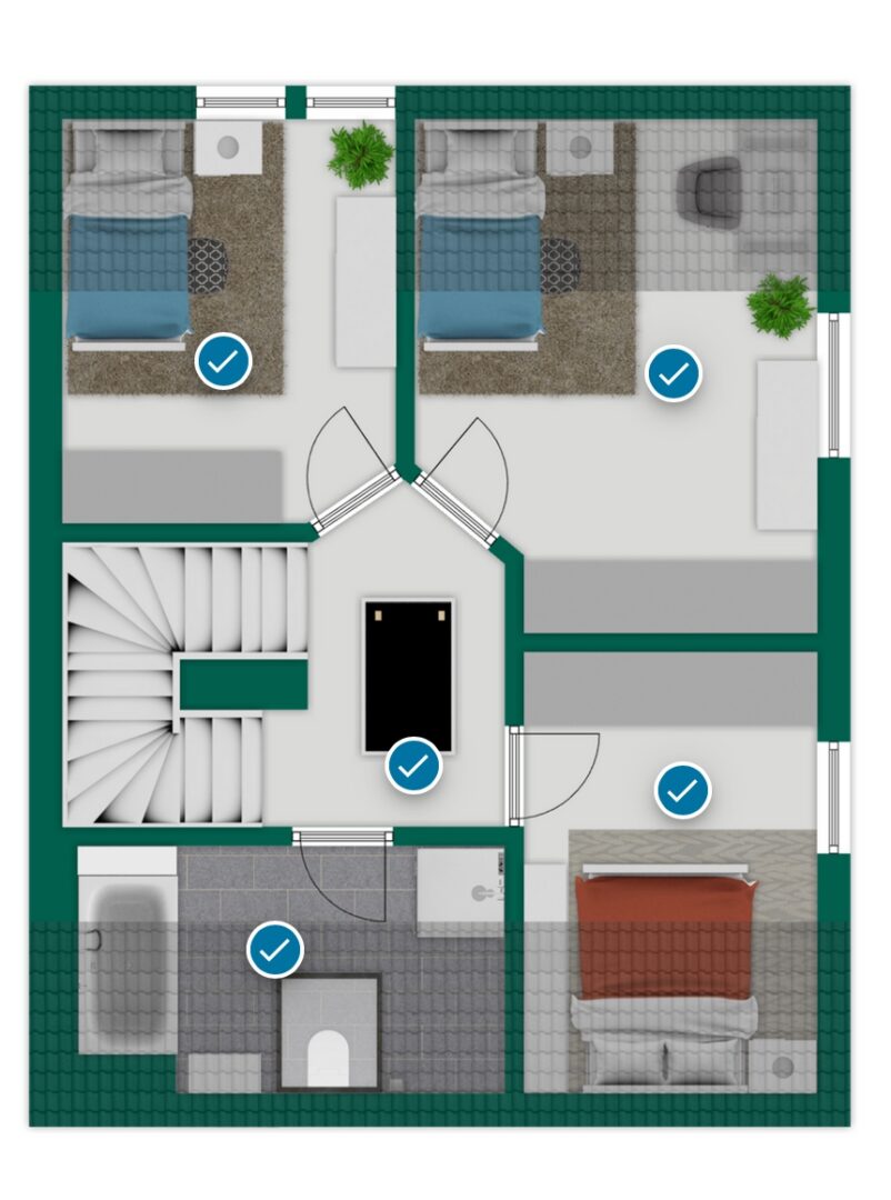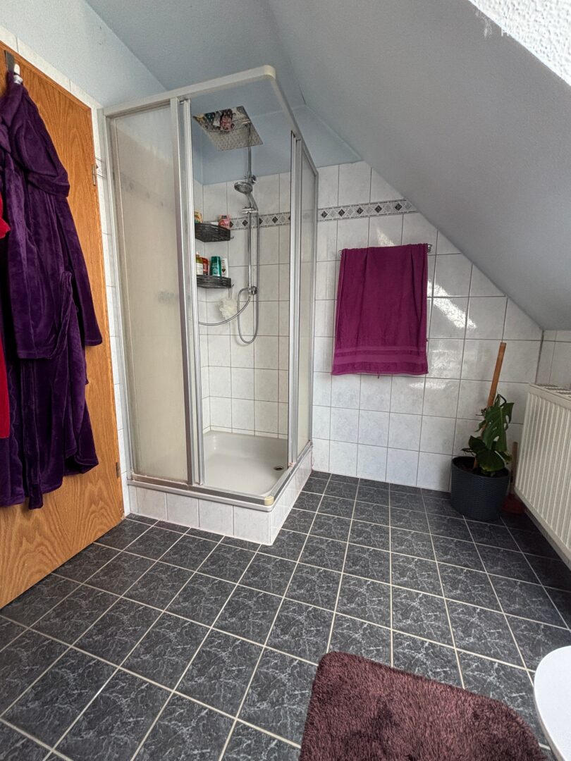 Vom Flur aus gelangen Sie über eine Treppe ins Obergeschoss. Hier gibt es 3 ansprechende Schlafzimmer und ein geräumiges Tageslichtbad mit Wanne und Dusche.
