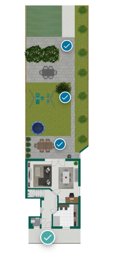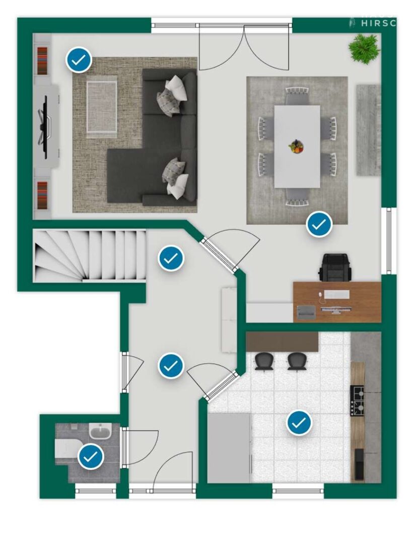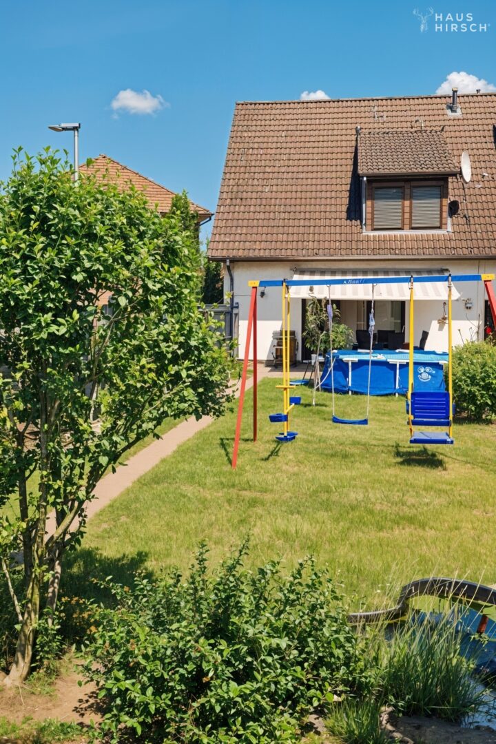 Die gemütliche Doppelhaushälfte besticht durch ihre gute Raumaufteilung und ihren zauberhaften Garten. Im Erdgeschoss befinden sich Flur, Küche, Gäste-WC und das Wohn-Esszimmer. Von hier aus haben Sie einen schönen Blick auf die Terrasse und in den Garten. Durch die Südwest-Ausrichtung ist der Bereich hell und freundlich.