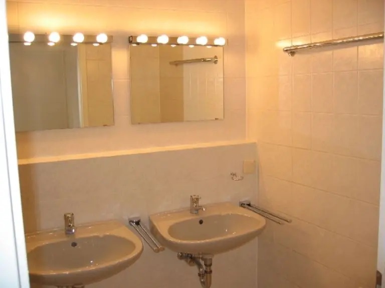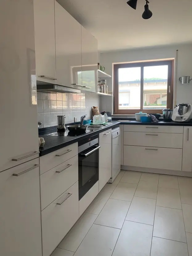 Die Küche ist mit einer hochwertigen Einbauküche (EK 10k€) ausgestattet, die neben einer Spülmaschine (BOSCH), einem Kühlschrank mit großem Gefrierschrank (SIEMENS) und einem Backofen mit Herd (SIEMENS) auch einen Abzug bietet. Die Toilette und das Badezimmer sind vorteilhafterweise getrennt, und sowohl Toilette als auch Waschbecken sind von Villeroy & Boch, die Armaturen von Grohe.