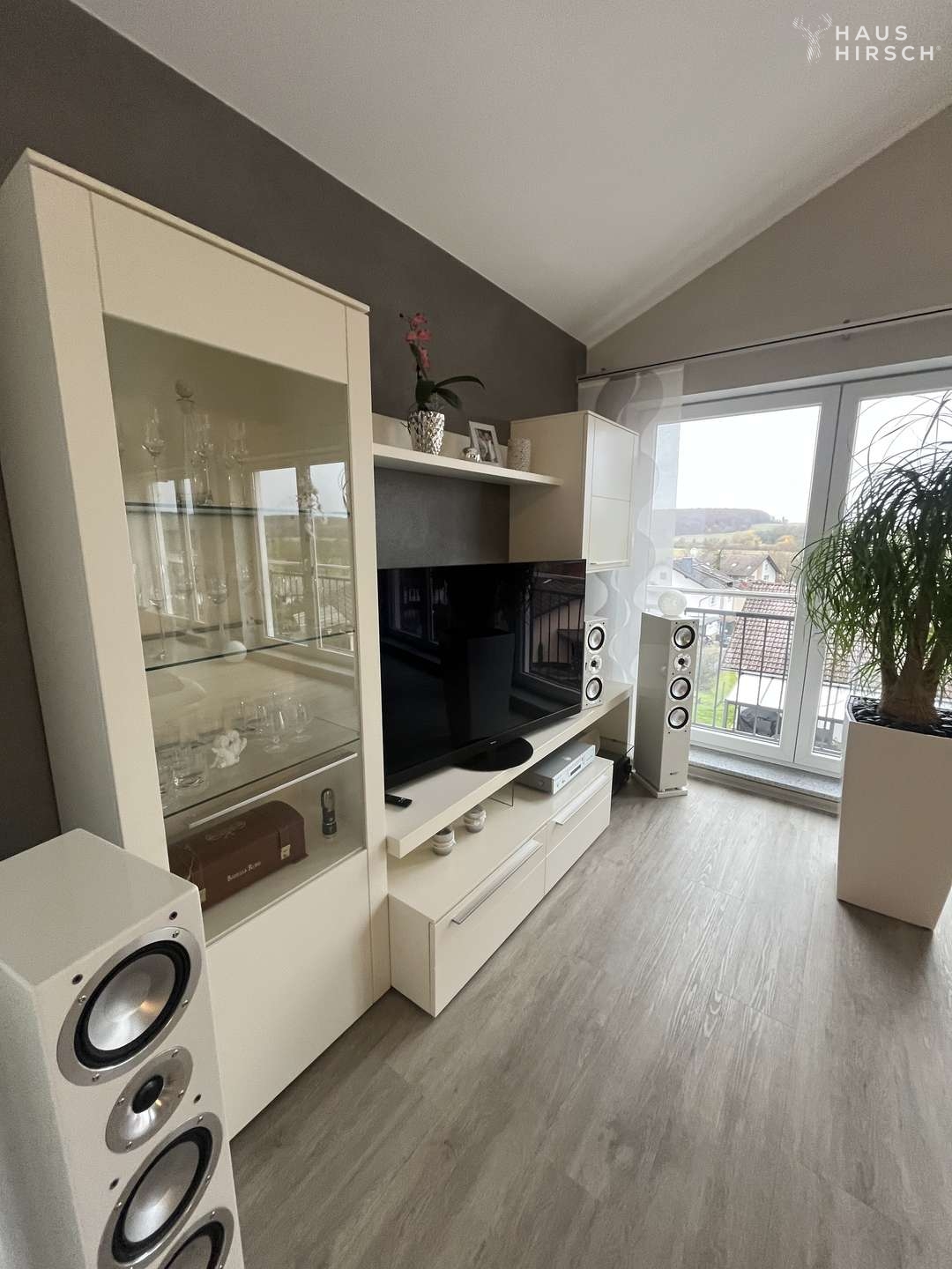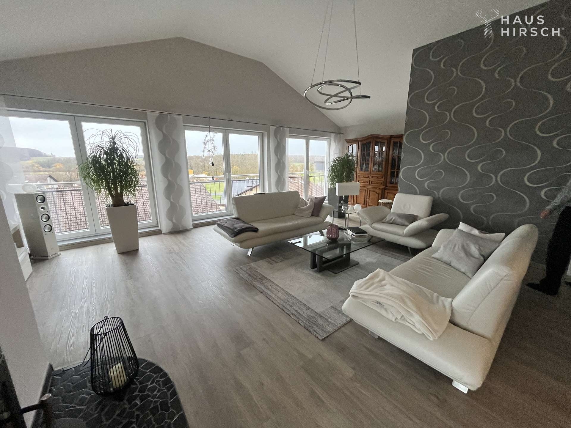 Das Dachgeschoss ist das architektonische Highlight: beeindruckend hohe Decken, Weitblick bis zum Hoherodskopf und eine großzügige Küche machen diesen Bereich zum Herzstück des Hauses.