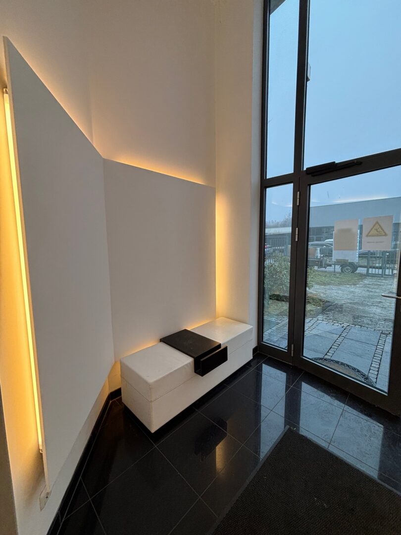 Neben der großen Produktionsfläche verfügen die Hallen über diverse Nebenräume sowie ein großes Büro, das ausreichend Platz für Ihre Mitarbeiter bietet. Hier haben Sie die Möglichkeit, Ihre Geschäftsideen optimal umzusetzen und Ihr Unternehmen erfolgreich zu führen. Es handelt sich im vorderen Bereich um einen 109 m² großen Bürobereich mit Teeküche und Empfang, dahinter um drei Produktionshallen, alle circa so groß wie die gezeigte, und um einen seitlichen hinteren kleinen Bürobereich (16 qm) mit angrenzender Küche und WC. Hinter dem Gebäude sind weitere Stellplätze.
