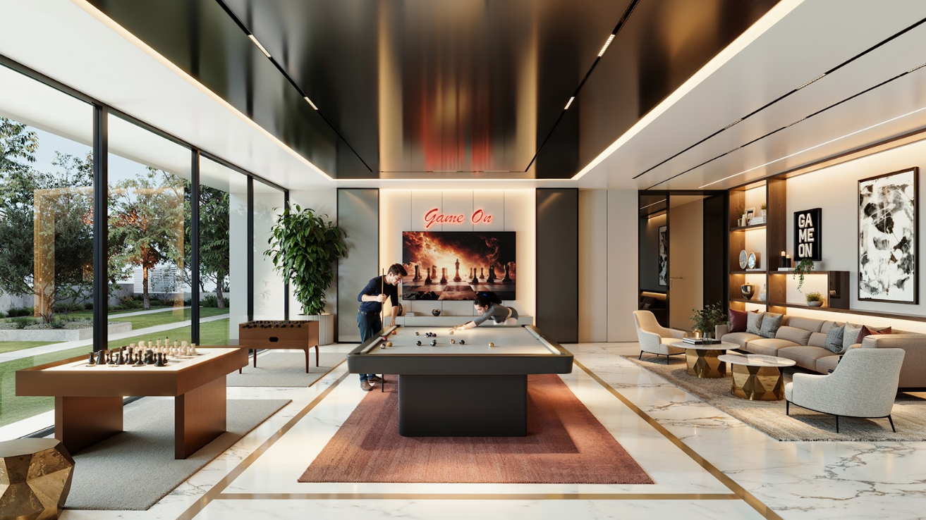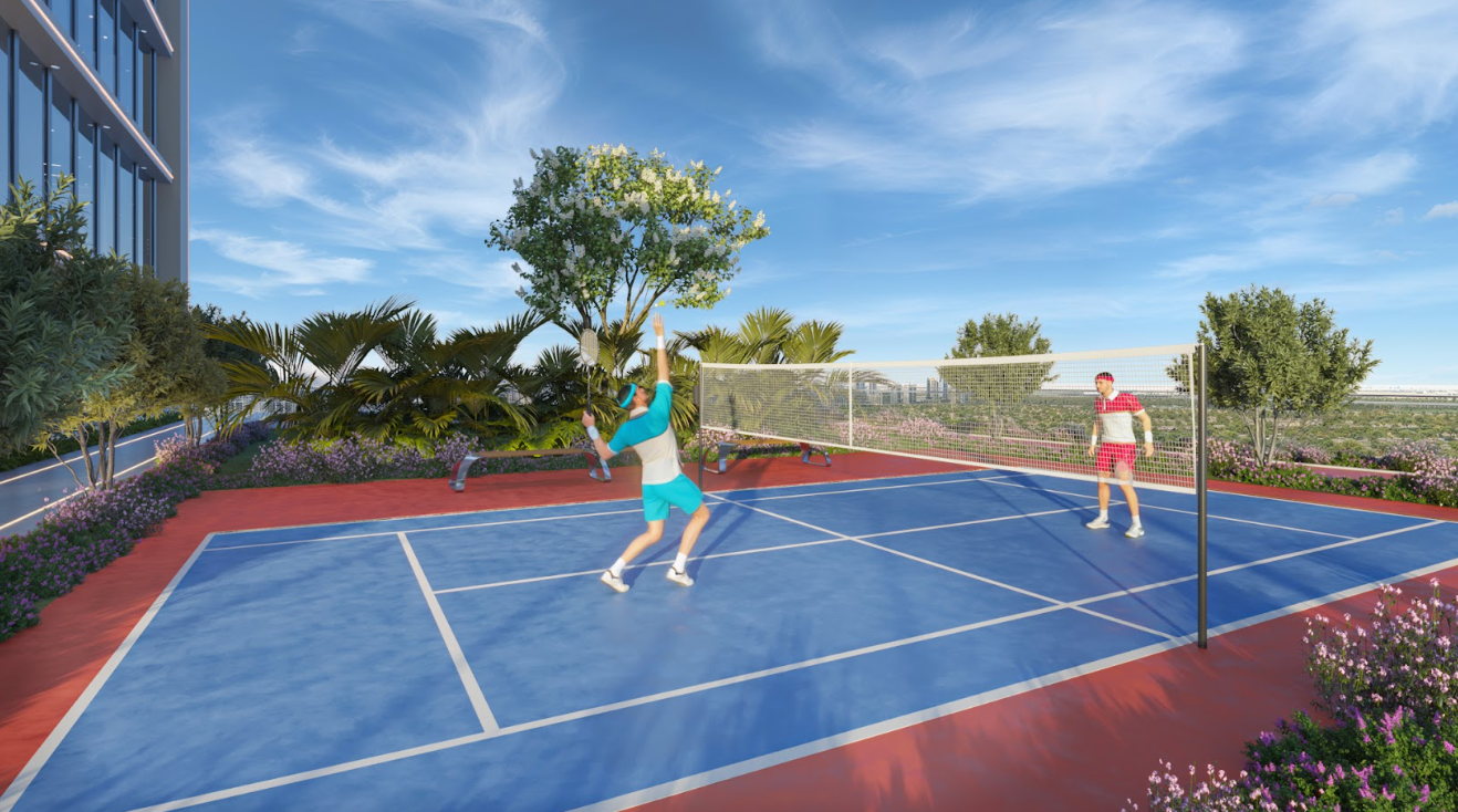 Für diejenigen, die sich gerne sportlich betätigen, gibt es Sportplätze für Basketball, Padel-Tennis, Badminton und sogar ein Kricketfeld. Wenn Sie es lieber etwas entspannter angehen lassen möchten, sind die Yoga- und Zumba-Zonen genau das Richtige für Sie. Und wenn Sie die Seele baumeln lassen wollen, können Sie sich einen Film im Indoor-Kino ansehen oder Freunde im Spielzimmer herausfordern.