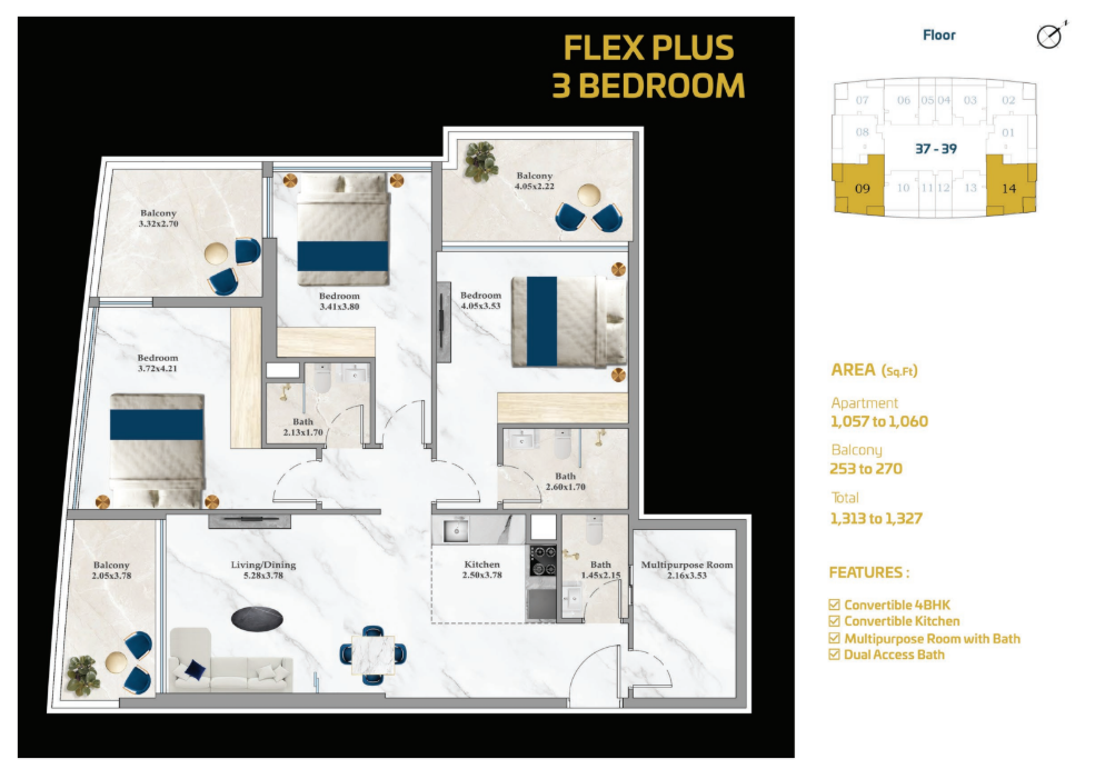 Wenn Sie diese luxuriöse 3-Schlafzimmer-Wohnung mit Mehrzweckraum betreten, werden Sie von einer Welt von Bewohner- und Freizeiteinrichtungen begrüßt, die Ihr Wohnerlebnis sicher bereichern werden. Stellen Sie sich vor, Sie beginnen Ihren Tag mit einem erfrischenden Bad im Infinity-Pool oder in einem der zusätzlichen Swimmingpools, gefolgt von einem Training in den Fitnessräumen im Innen- und Außenbereich, die mit Duschen ausgestattet sind.