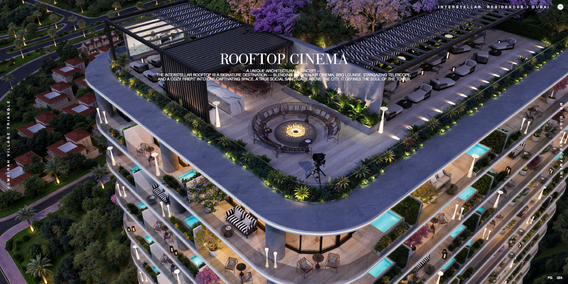 Wagen Sie sich auf die Dachterrasse und entdecken Sie eine Welt voller Freizeit und Unterhaltung. Von Infinity-Pools, die einen atemberaubenden Blick auf die Skyline der Stadt bieten, bis hin zu einem langsamen Fluss - Dubais höchstem und langsamstem künstlichen Strom - ist jedes Detail durchdacht, um Ihr Wohnerlebnis zu verbessern. Genießen Sie einen Filmabend unter dem Sternenhimmel im Dachkino oder erkunden Sie die Galaxie durch das Teleskop des Observatoriums auf dem Dach.
