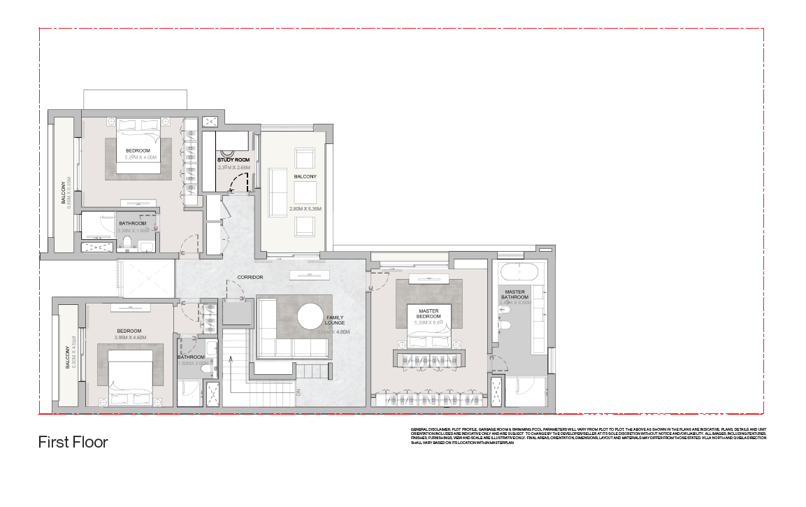 In dieser exquisiten Villa finden Sie Luxus und Privatsphäre vom Feinsten. Genießen Sie Ihren eigenen privaten Swimmingpool, den Garten und die großen Außenterrassen, die direkten Zugang zu den Grünflächen bieten. Die Innenausstattung umfasst voll ausgestattete Küchen mit Spitzengeräten, Schlafzimmer mit eigenem Bad und begehbarem Kleiderschrank sowie ein separates Dienstmädchenzimmer für zusätzlichen Komfort.
