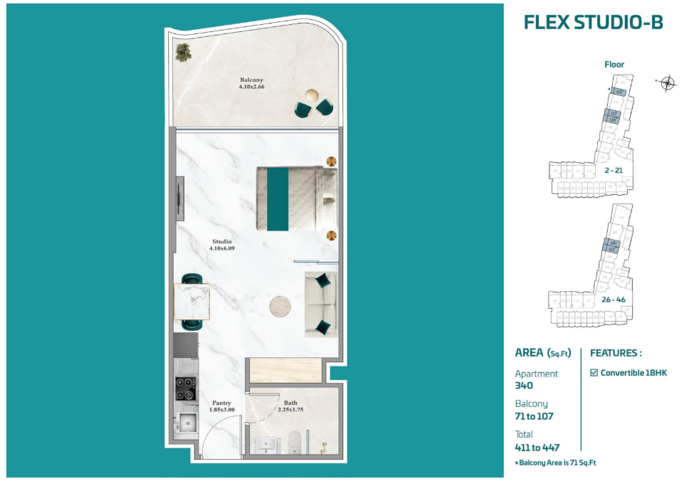 Willkommen im Breeze by Danube, wo das Leben im Resort-Stil auf Luxus in diesem Flex Studio Apartment trifft. Wenn Sie eintreten, werden Sie von einer großen Lobby mit einem atemberaubenden 1.500 Quadratmeter großen Aquarium begrüßt. Das Apartment ist mit Smart-Home-Funktionen ausgestattet, die es Ihnen ermöglichen, Beleuchtung, Klimaanlage und Sicherheit mit nur einem Fingertipp auf Ihrem Telefon zu steuern.