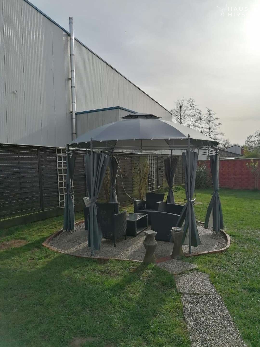 Das Grundstück bietet außerdem großzügige Außenflächen mit ca. 20 Stellplätzen im Hof sowie etwa 10 Kundenparkplätzen an der Straßenseite. Eine zusätzliche Garage befindet sich neben dem Wohnhaus.