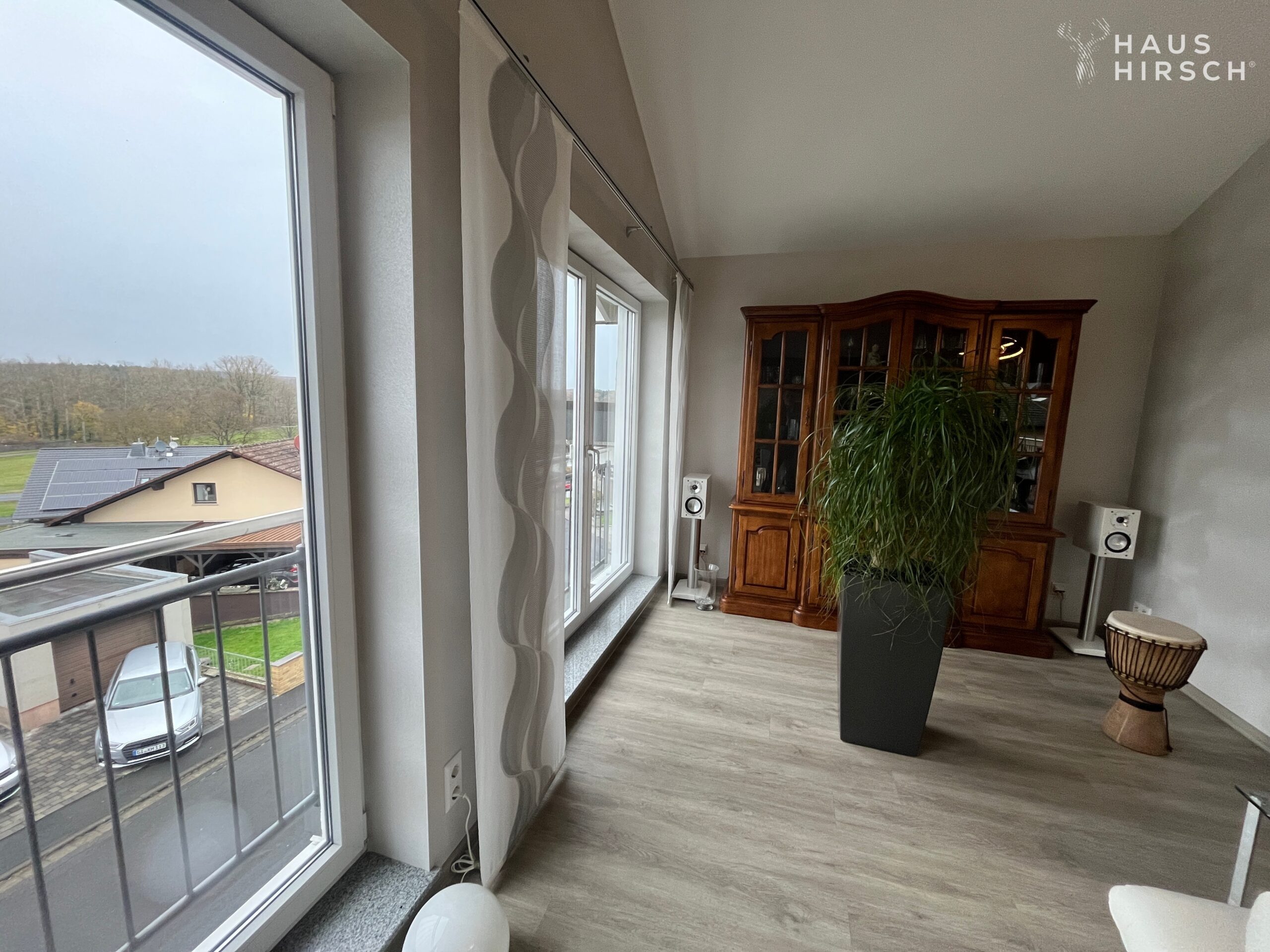 Das Dachgeschoss ist das architektonische Highlight: beeindruckend hohe Decken, Weitblick bis zum Hoherodskopf und eine großzügige Küche machen diesen Bereich zum Herzstück des Hauses.