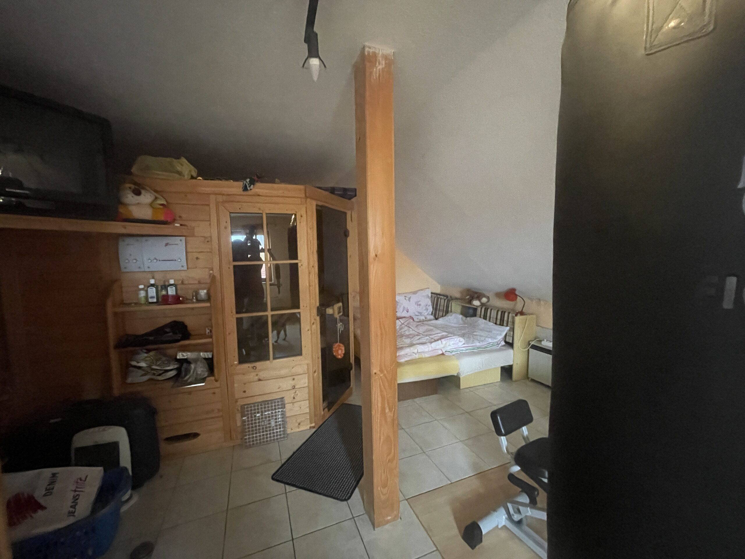 Willkommen in Ihrem neuen Zuhause! Dieses große, geräumige Einfamilienhaus mit Einliegerwohnung und untergeordneter gewerblicher Nutzung, bietet die perfekte Kombination aus Wohnen und Arbeiten. Die große Garage bietet Platz für 2 Autos nebst Zubehör oder gar als Hobbywerksatt. Eine diverse großzügige Küche lädt zum gemeinsamen Kochen und Verweilen ein, während die gefliesten Böden für eine pflegeleichte und moderne Atmosphäre sorgen. Im Garten befindet sich ein schöner Teich, eine großzügige Feuerstelle und ein extra Schuppen bzw. Werksattbereich, welcher auch als Partyhütte genutzt werden kann. Eine Zisterne mit 6,5m3 rundet dies ab. Auch eine Fotovoltaikanlage mit 3,5kw arbeitet mit. Das Haus ist mittlerweile beräumt. Die Fotos entstanden während des Auszugs. Ideal für Familien, die Wert auf flexible Raumkonzepte legen, oder für Generationenwohnen geeignet. Auch die Vermietung der Einlieger - als Ferienwohnung bietet sich an, was zusätzliche Einnahmen generieren kann. Hier finden Sie alles, was Sie für ein komfortables und vielseitiges Wohnen benötigen. Willkommen in Ihrem neuen Traumhaus!