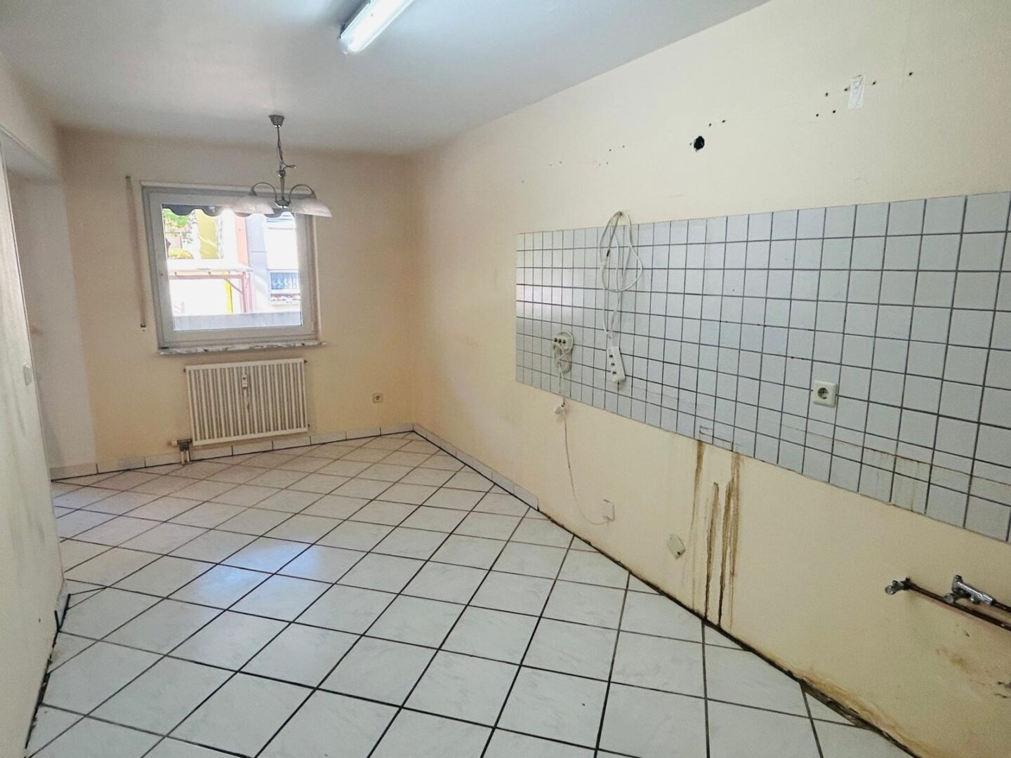 Der große Flur bietet ausreichend Platz für eine Garderobe und führt zu einem separaten Gäste-WC. Die Küche ist großzügig geschnitten und funktional gestaltet.