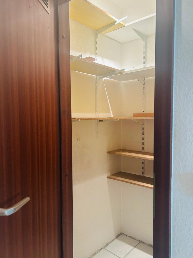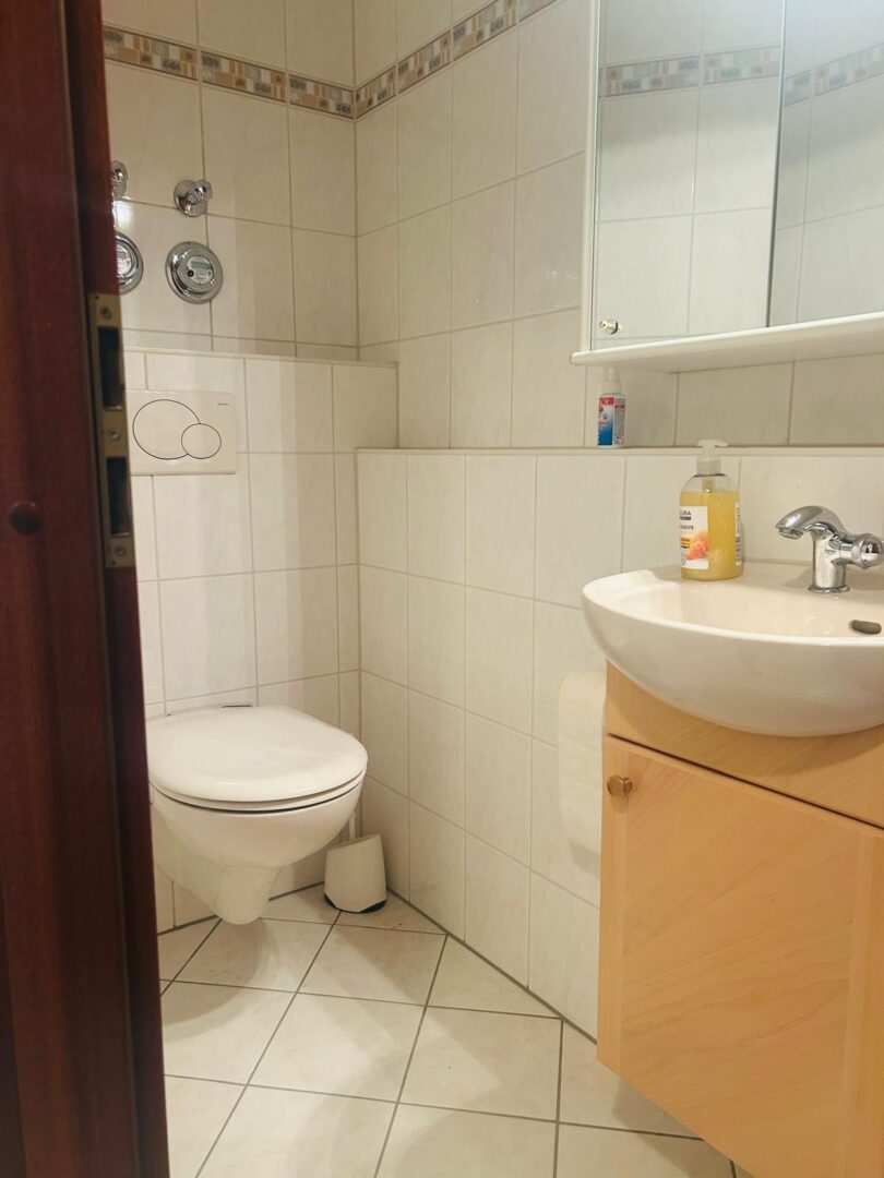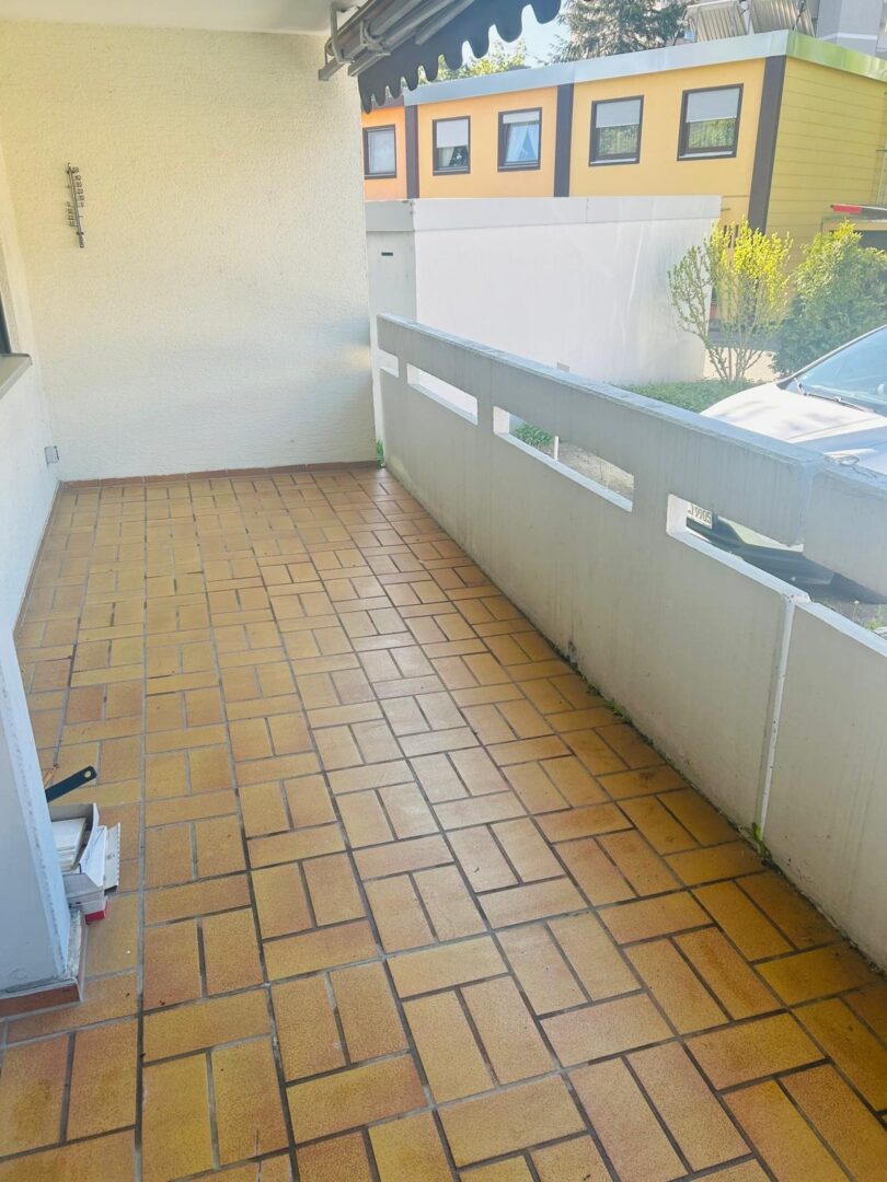 Die Wohnung verfügt über zwei Schlafzimmer, wobei eines mit Laminatboden ausgestattet ist, während in den übrigen Räumen pflegeleichte Fliesen verlegt sind. Ein helles und geräumiges Wohnzimmer bildet das Herzstück der Wohnung und bietet direkten Zugang zum ruhigen, geschützten Balkon, der mit einer Markise ausgestattet ist und zum Entspannen einlädt.