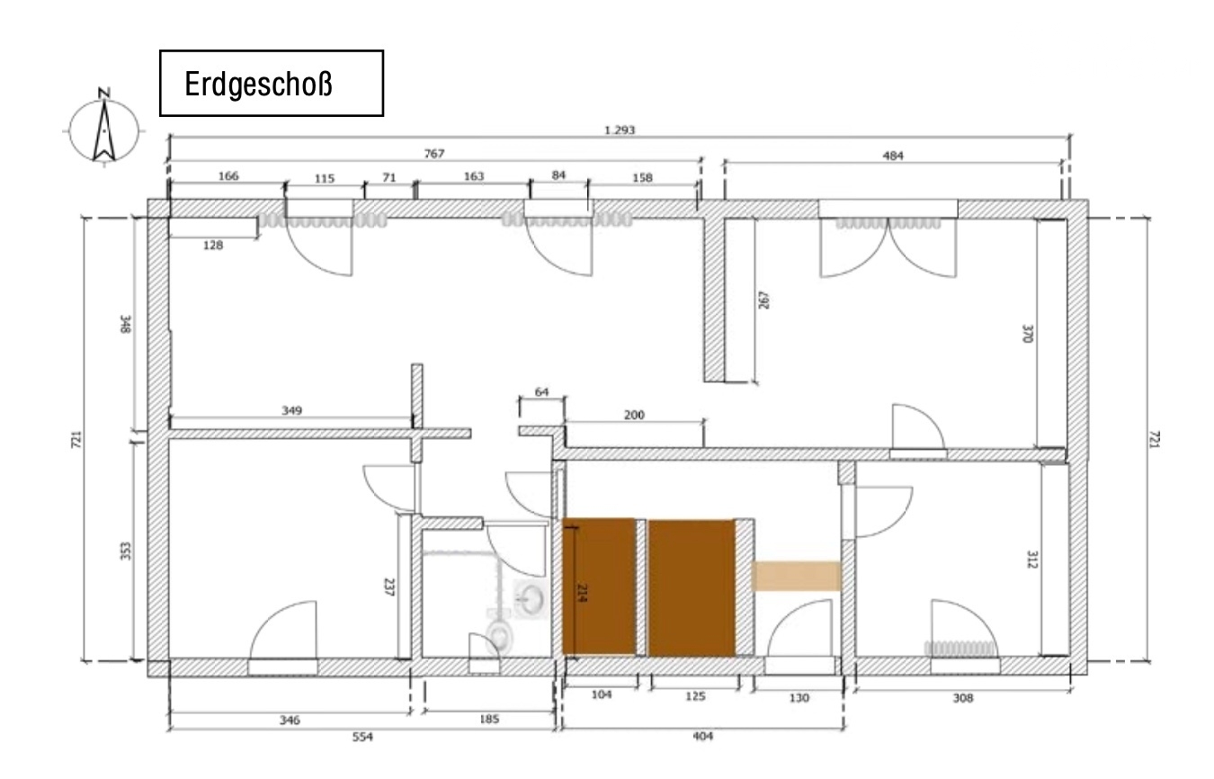 Im Erdgeschoss befindet sich eine derzeit teilweise vermietete Wohnung (ca. 55 m², erweiterbar auf ca. 90 m²), ausgestattet mit einer gepflegten Einbauküche.