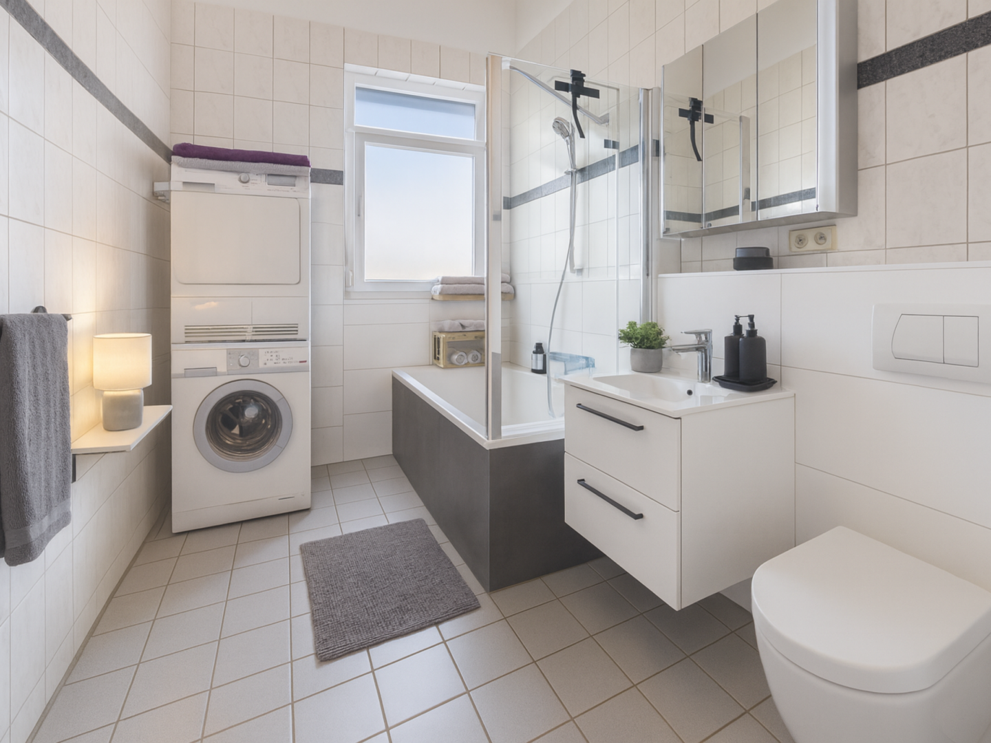 🛁 Badezimmer mit Fenster, Badewanne mit Duschfunktion sowie Waschmaschinenanschluss