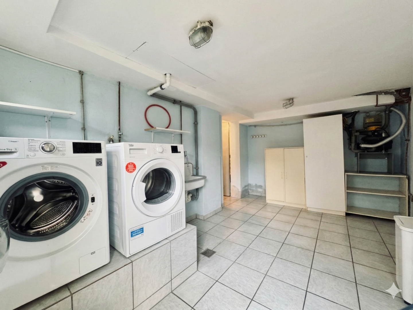 Das Haus ist vollständig unterkellert und bietet zusätzliche Nutzflächen, unter anderem mit Sauna. Eine Garage sowie insgesamt sieben Außenstellplätze runden das Angebot ab und sorgen für ausreichend Parkmöglichkeiten.