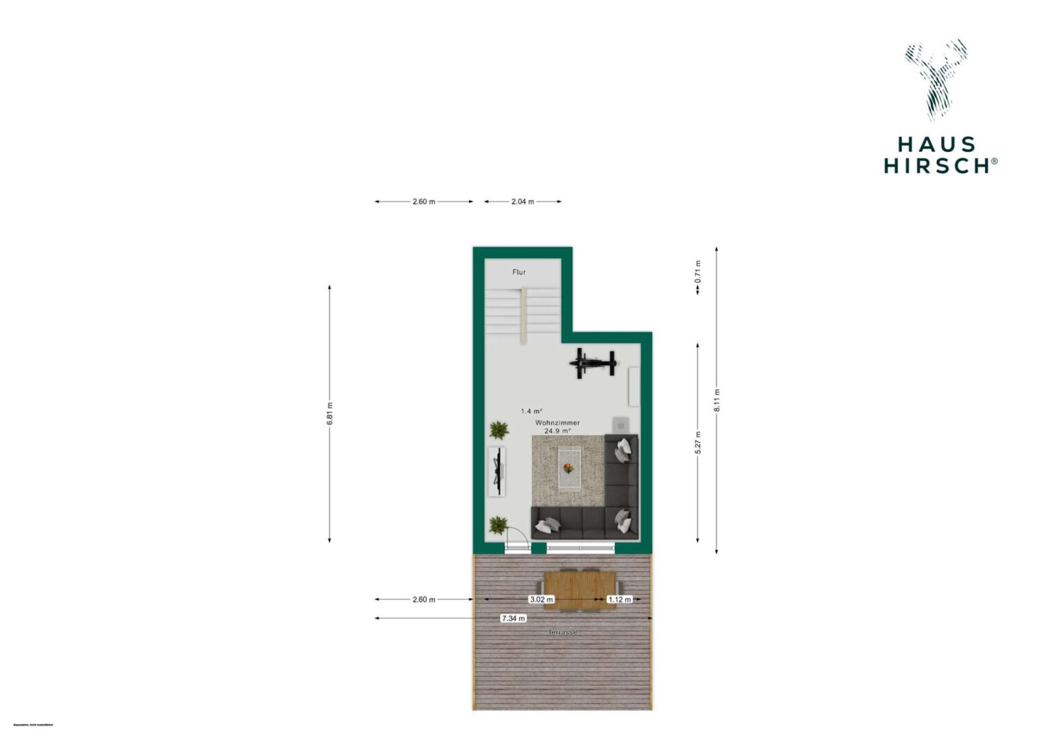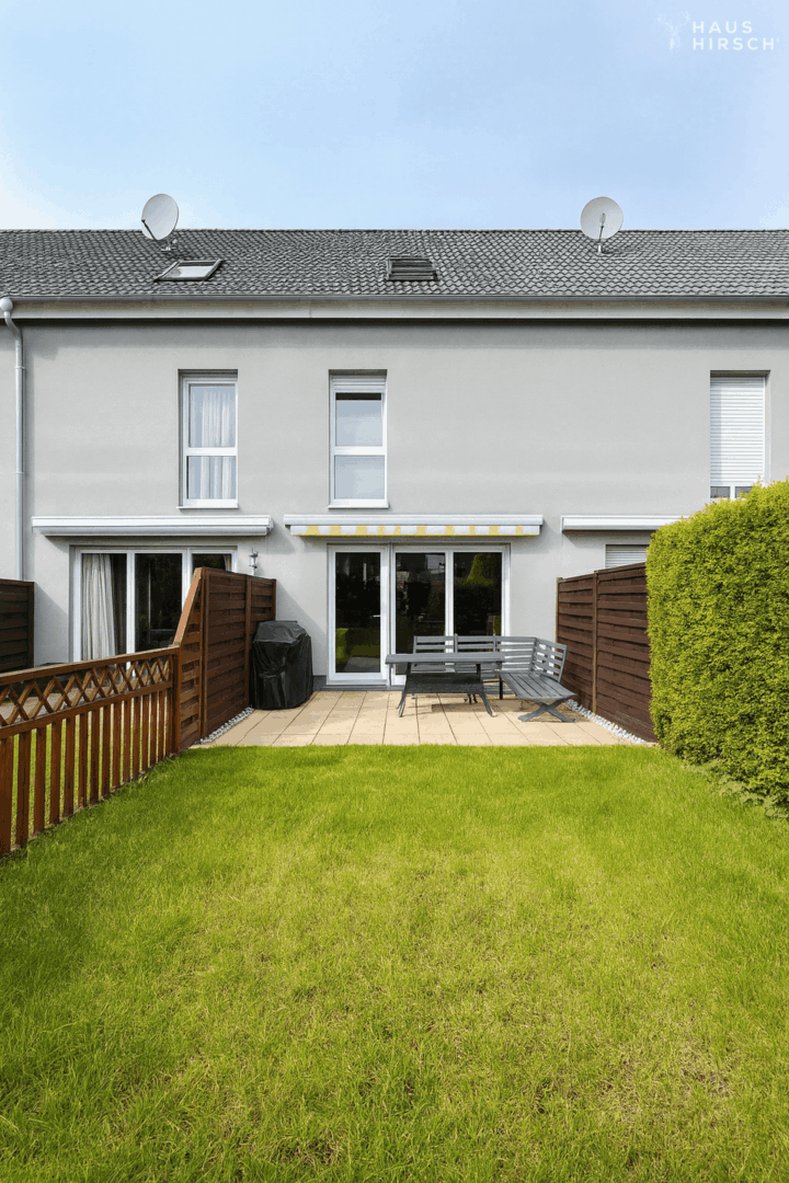 Ein besonderes Highlight stellt der großzügig angelegte Garten mit angrenzender Terrasse dar. Der private Außenbereich bietet viel Raum zur Erholung, für Freizeitaktivitäten oder gesellige Stunden im Freien. Durch die geschützte Lage können Kinder sicher draußen spielen, während zugleich eine ruhige und entspannte Atmosphäre erhalten bleibt.